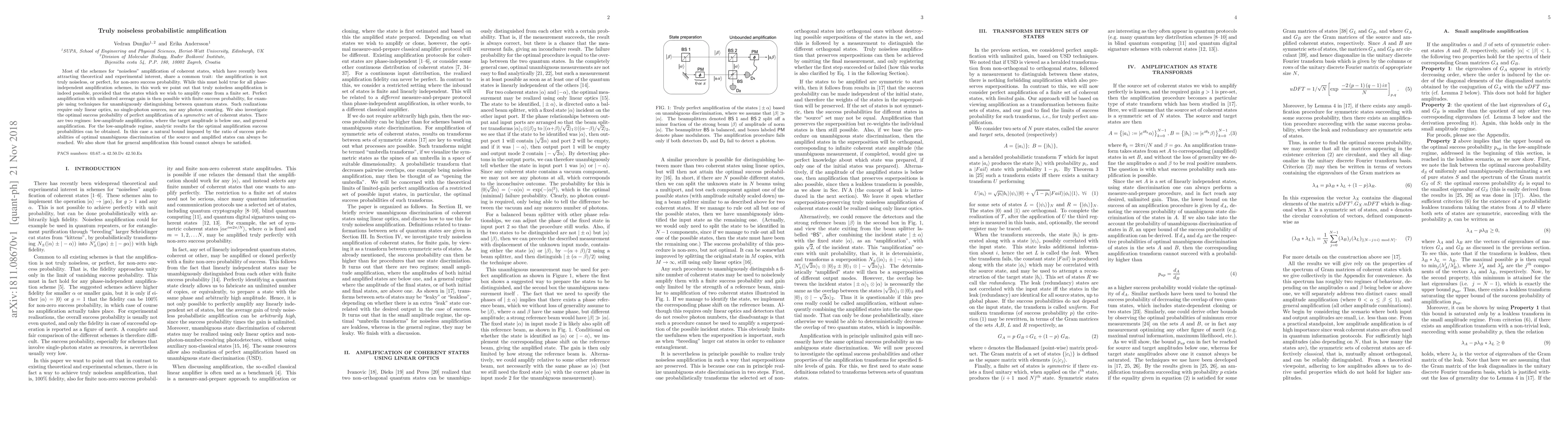 This paper demonstrates that truly noiseless amplification of coherent states is feasible for finite sets, using techniques for unambiguous state discrimination. It explores optimal success probabilities for both low-amplitude and general amplification regimes, revealing that the low-amplitude regime can achieve a natural bound, while general amplification may not.