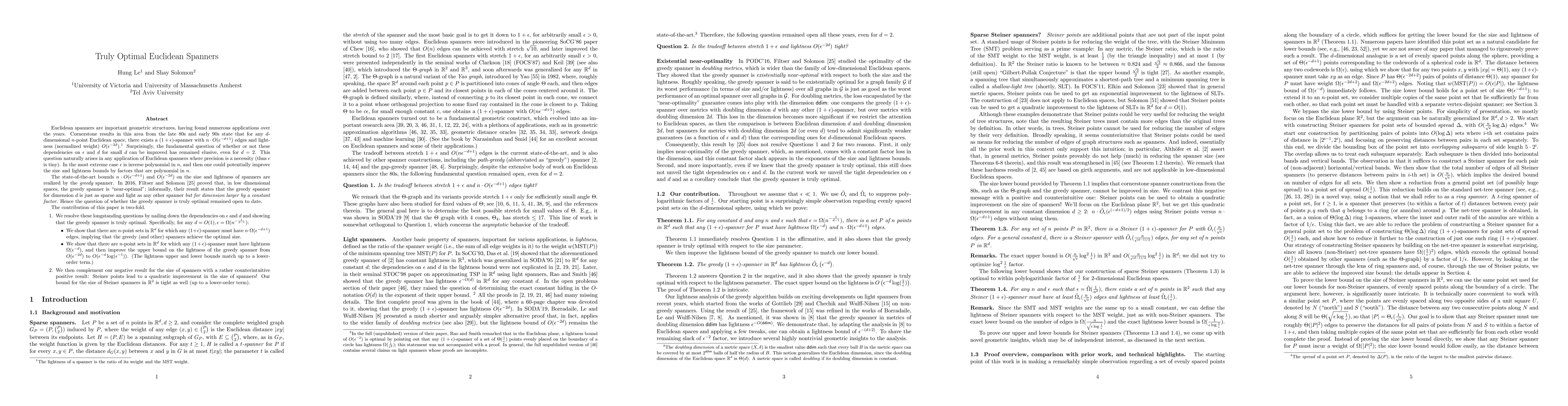 Euclidean spanners are important geometric structures, having found numerous applications over the years. Cornerstone results in this area from the late 80s and early 90s state that for any $d$-dimensional $n$-point Euclidean space, there exists a $(1+\epsilon)$-spanner with $nO(\epsilon^{-d+1})$ edges and lightness $O(\epsilon^{-2d})$. Surprisingly, the fundamental question of whether or not these dependencies on $\epsilon$ and $d$ for small $d$ can be improved has remained elusive, even for $d = 2$. This question naturally arises in any application of Euclidean spanners where precision is a necessity. The state-of-the-art bounds $nO(\epsilon^{-d+1})$ and $O(\epsilon^{-2d})$ on the size and lightness of spanners are realized by the {\em greedy} spanner. In 2016, Filtser and Solomon proved that, in low dimensional spaces, the greedy spanner is near-optimal. The question of whether the greedy spanner is truly optimal remained open to date. The contribution of this paper is two-fold. We resolve these longstanding questions by nailing down the exact dependencies on $\epsilon$ and $d$ and showing that the greedy spanner is truly optimal. Specifically, for any $d= O(1), \epsilon = \Omega({n}^{-\frac{1}{d-1}})$: - We show that any $(1+\epsilon)$-spanner must have $n \Omega(\epsilon^{-d+1})$ edges, implying that the greedy (and other) spanners achieve the optimal size. - We show that any $(1+\epsilon)$-spanner must have lightness $\Omega(\epsilon^{-d})$, and then improve the upper bound on the lightness of the greedy spanner from $O(\epsilon^{-2d})$ to $O(\epsilon^{-d})$. We then complement our negative result for the size of spanners with a rather counterintuitive positive result: Steiner points lead to a quadratic improvement in the size of spanners! Our bound for the size of Steiner spanners is tight as well (up to lower-order terms).