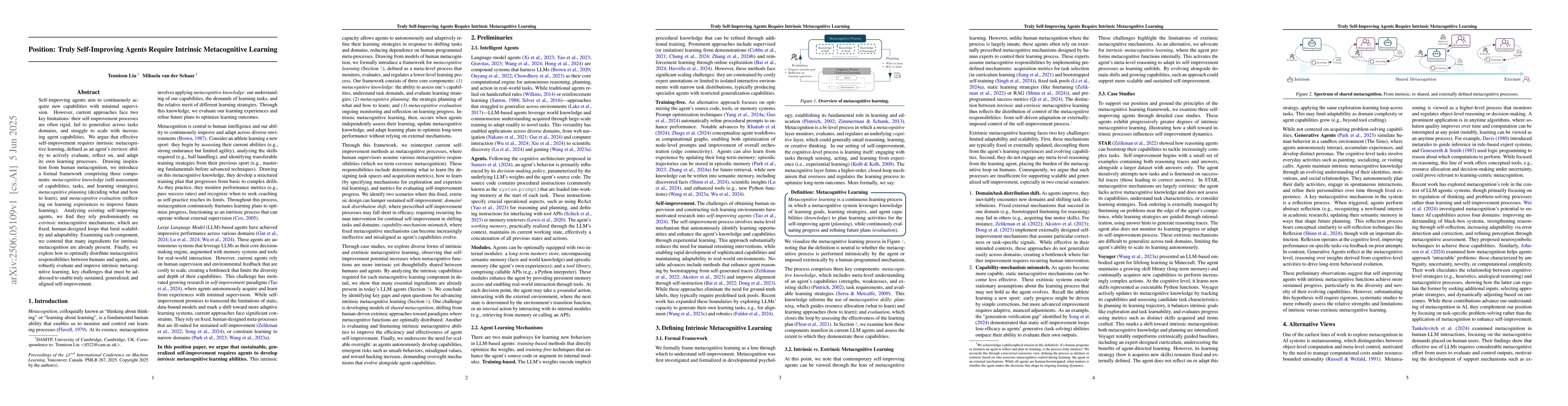 Self-improving agents need intrinsic metacognitive learning to scale and generalize their capabilities; existing approaches rely on fixed, human-designed loops that limit adaptability.