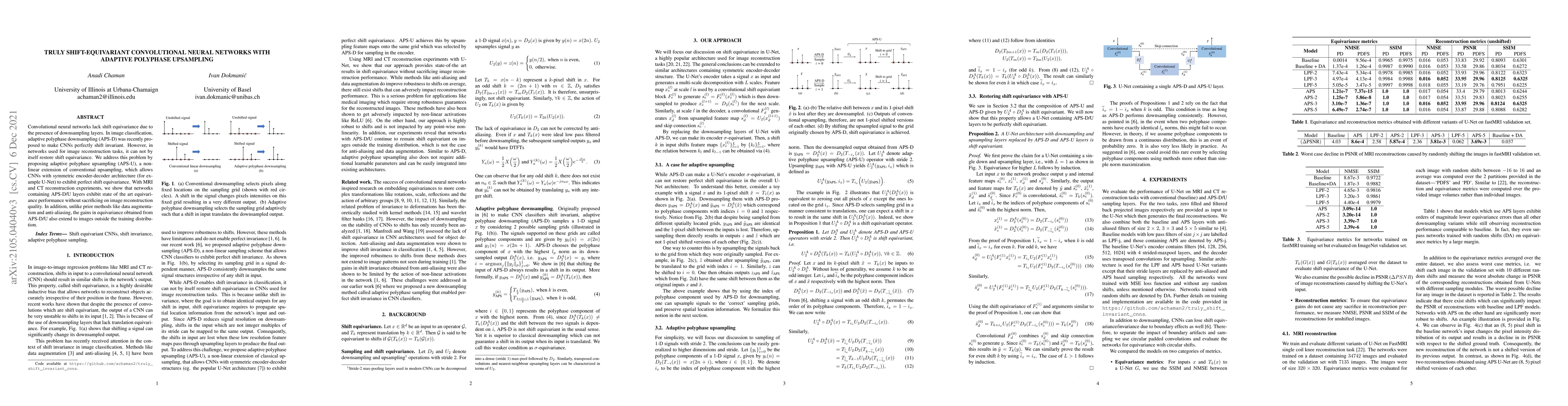 The paper proposes Adaptive Polyphase Upsampling (APS-U) to complement Adaptive Polyphase Downsampling (APS-D), enabling shift-equivariance in symmetric encoder-decoder CNN architectures like U-Net. This is demonstrated through MRI and CT reconstruction experiments.