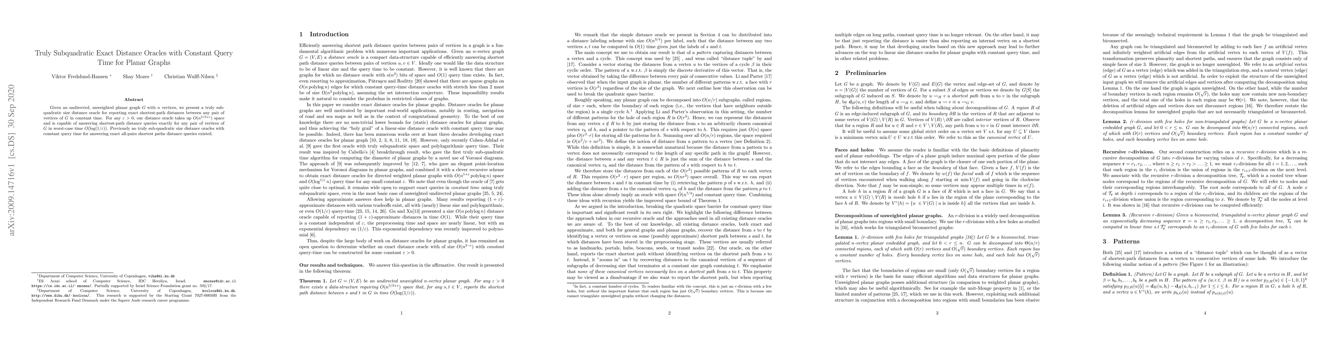 This paper introduces an exact distance oracle for planar graphs that occupies $O(n^{5/3+\varepsilon})$ space and answers shortest-path distance queries in constant time $O(\log (1/\varepsilon))$, achieving the first truly subquadratic size with constant query time.