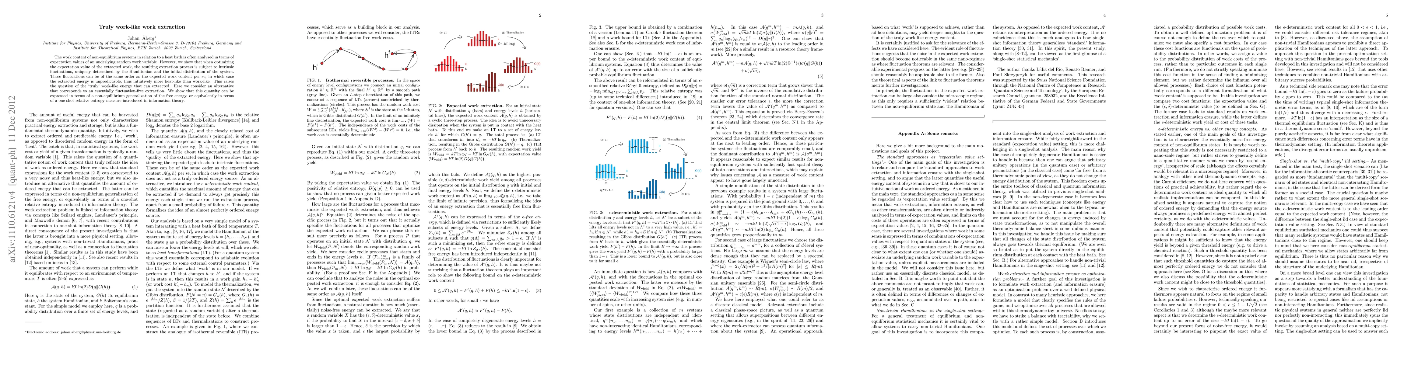 Researchers discovered that extracting work from non-equilibrium systems can lead to unpredictable energy output due to intrinsic fluctuations, raising questions about the 'truly' work-like energy that can be extracted. An alternative quantity, related to a non-equilibrium generalization of free energy, offers a fluctuation-free extraction method.