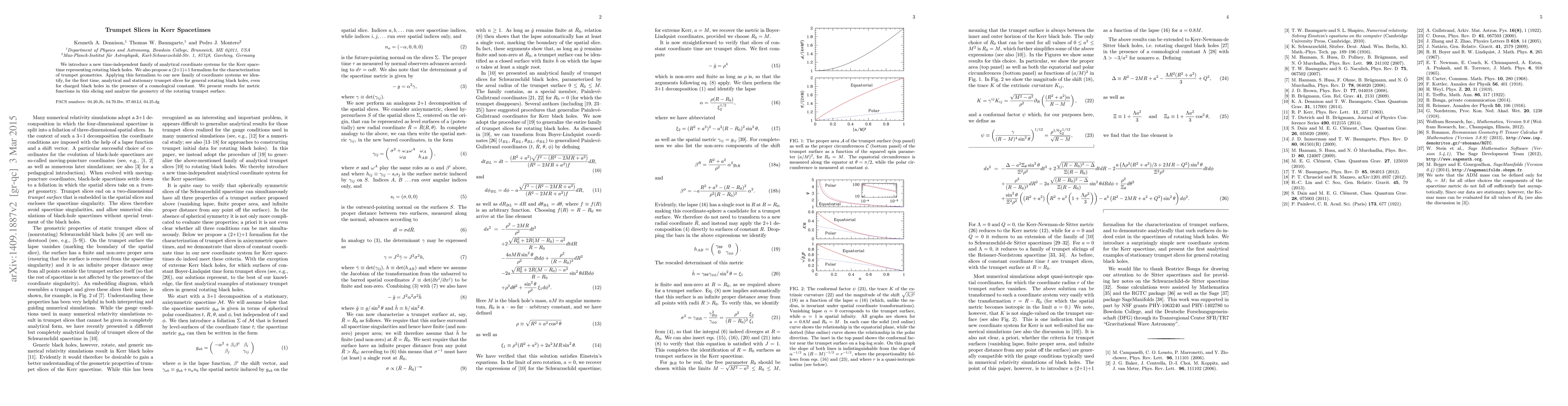 This paper introduces a new time-independent coordinate system for Kerr spacetimes, enabling the identification of analytical and stationary trumpet slices for rotating black holes, including charged black holes with a cosmological constant. The study also presents metric functions and analyzes the geometry of the rotating trumpet surface.