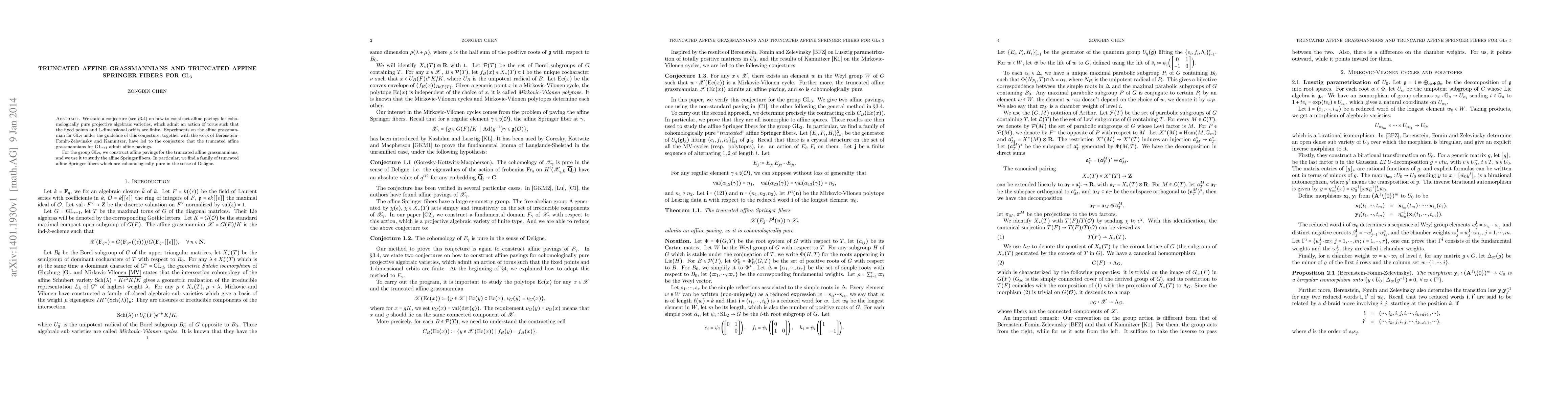 This paper proposes a conjecture for constructing affine pavings for certain projective algebraic varieties with finite fixed points and 1-dimensional orbits under torus action. It applies this conjecture to $\mathrm{GL}_{3}$, constructing affine pavings for truncated affine grassmannians and studying truncated affine Springer fibers, finding them to be cohomologically pure.