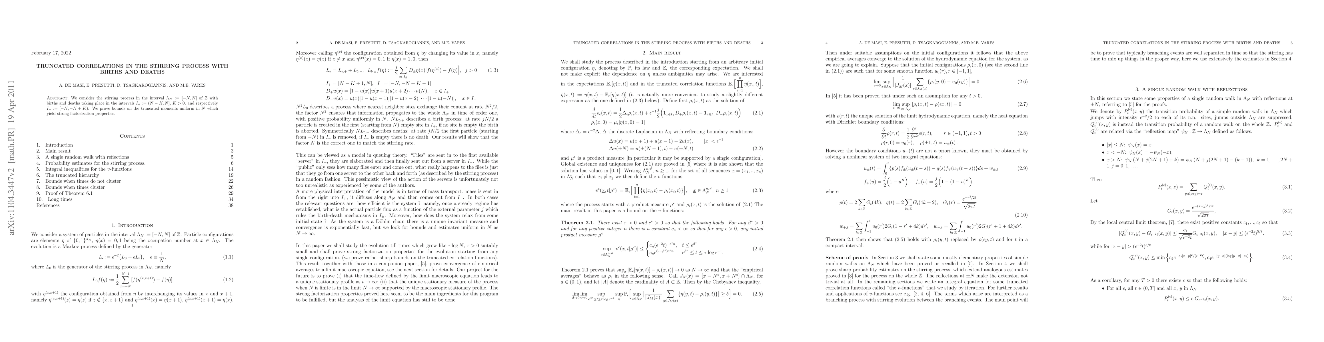 This paper investigates the stirring process with births and deaths in the interval $\La_N$ on $\mathbb{Z}$, focusing on the intervals $I_+$ and $I_-$ for these events. The authors establish uniform bounds on truncated moments, revealing strong factorization properties.