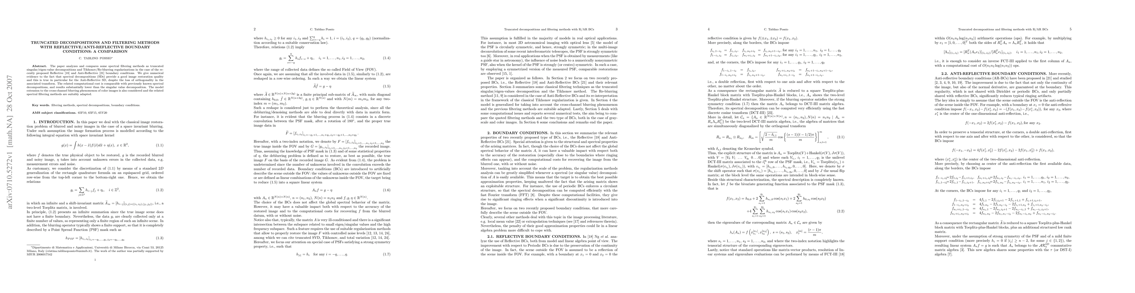 This paper compares spectral filtering methods, including truncated decompositions and regularizations, under Reflective and Anti-Reflective boundary conditions for image deblurring. It finds that spectral decompositions, especially the Anti-Reflective variant, offer good restoration quality despite non-orthogonal transforms, with comparable computational costs to previous methods.