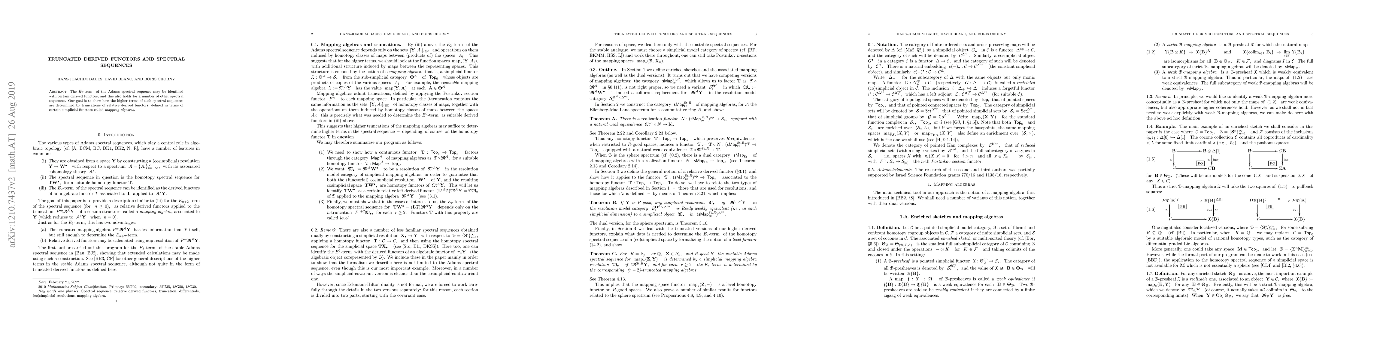 This paper explores the relationship between the $E_2$ term of the Adams spectral sequence and derived functors, demonstrating how higher terms in various spectral sequences are determined by truncations of relative derived functors via simplicial functors known as mapping algebras.