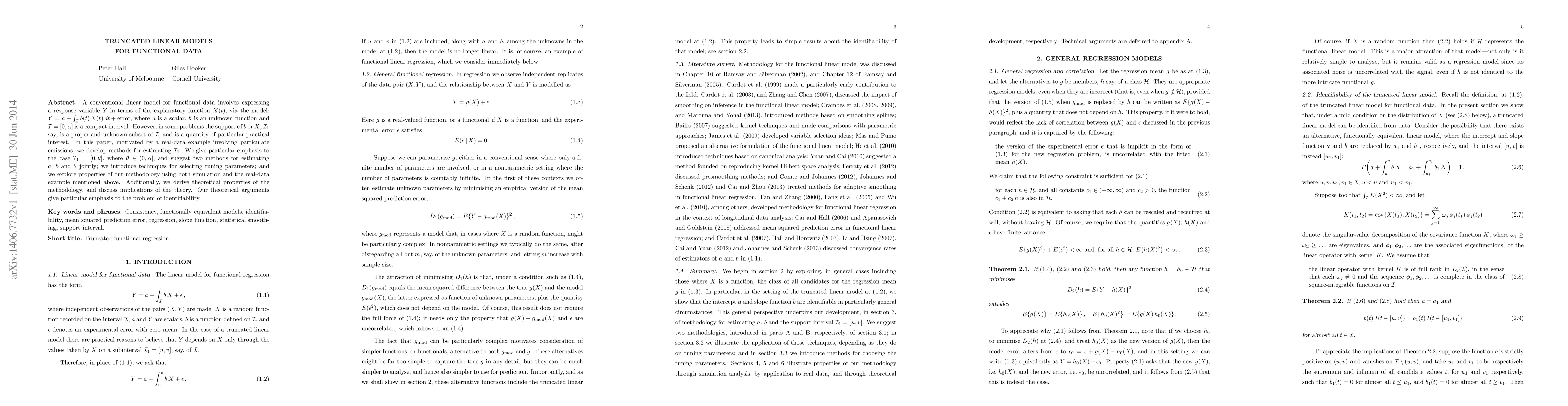 A conventional linear model for functional data involves expressing a response variable $Y$ in terms of the explanatory function $X(t)$, via the model: $Y=a+\int_I b(t)X(t)dt+\hbox{error}$, where $a$ is a scalar, $b$ is an unknown function and $I=[0, \alpha]$ is a compact interval. However, in some problems the support of $b$ or $X$, $I_1$ say, is a proper and unknown subset of $I$, and is a quantity of particular practical interest. In this paper, motivated by a real-data example involving particulate emissions, we develop methods for estimating $I_1$. We give particular emphasis to the case $I_1=[0,\theta]$, where $\theta \in(0,\alpha]$, and suggest two methods for estimating $a$, $b$ and $\theta$ jointly; we introduce techniques for selecting tuning parameters; and we explore properties of our methodology using both simulation and the real-data example mentioned above. Additionally, we derive theoretical properties of the methodology, and discuss implications of the theory. Our theoretical arguments give particular emphasis to the problem of identifiability.