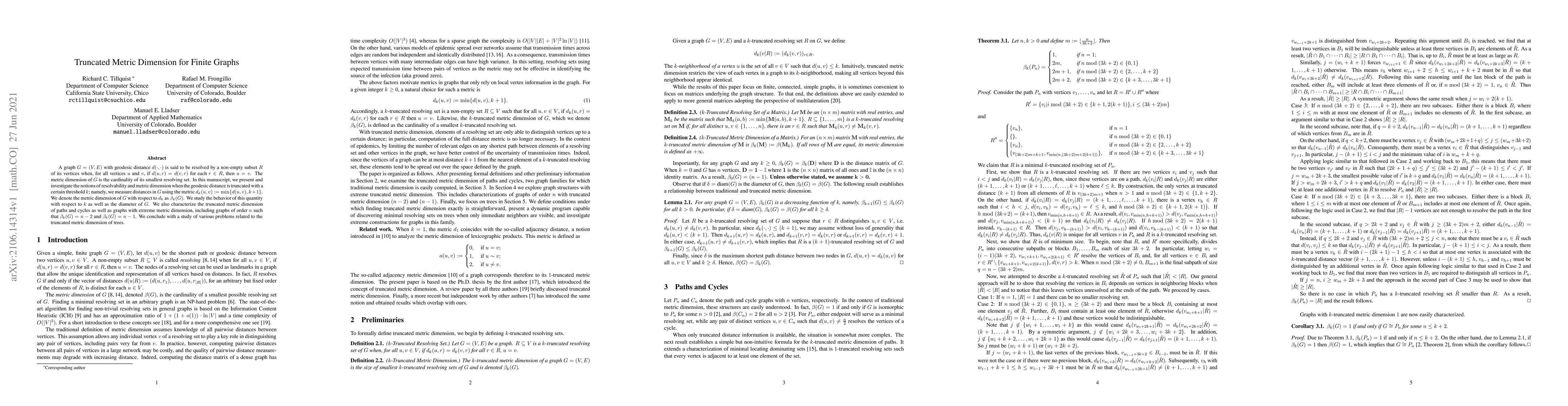 This paper investigates the concept of truncated metric dimension in finite graphs, where distances are limited by a threshold $k$. It defines $\beta_k(G)$ as the metric dimension under the truncated metric $d_k$, and explores its behavior relative to $k$ and graph diameter, characterizing the dimension for paths, cycles, and trees.
