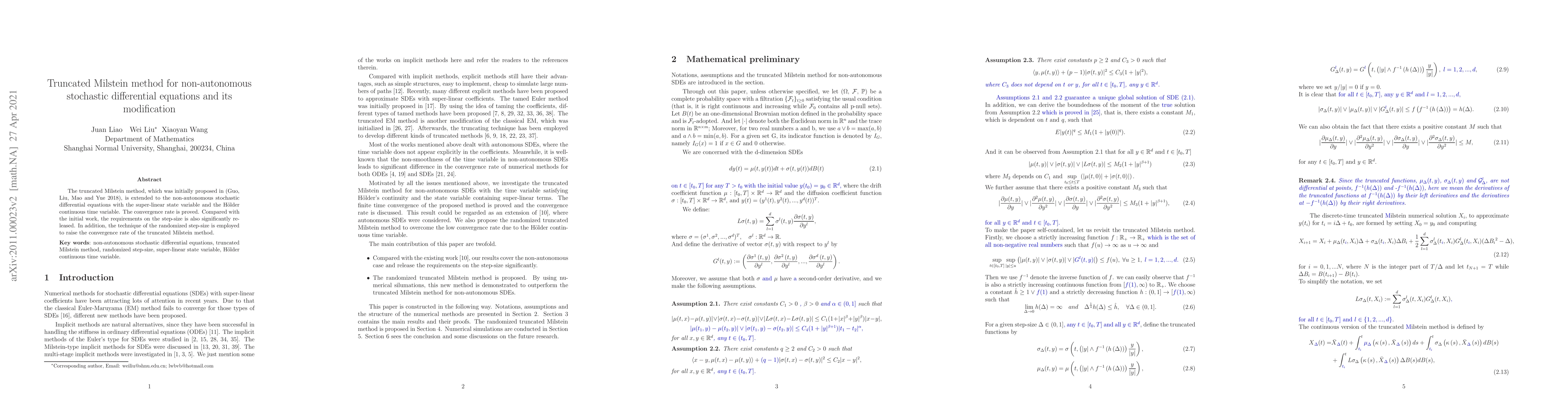 The paper extends the truncated Milstein method to non-autonomous stochastic differential equations, proving its convergence rate and relaxing step-size requirements. It also introduces a randomized step-size technique to enhance the method's convergence rate.