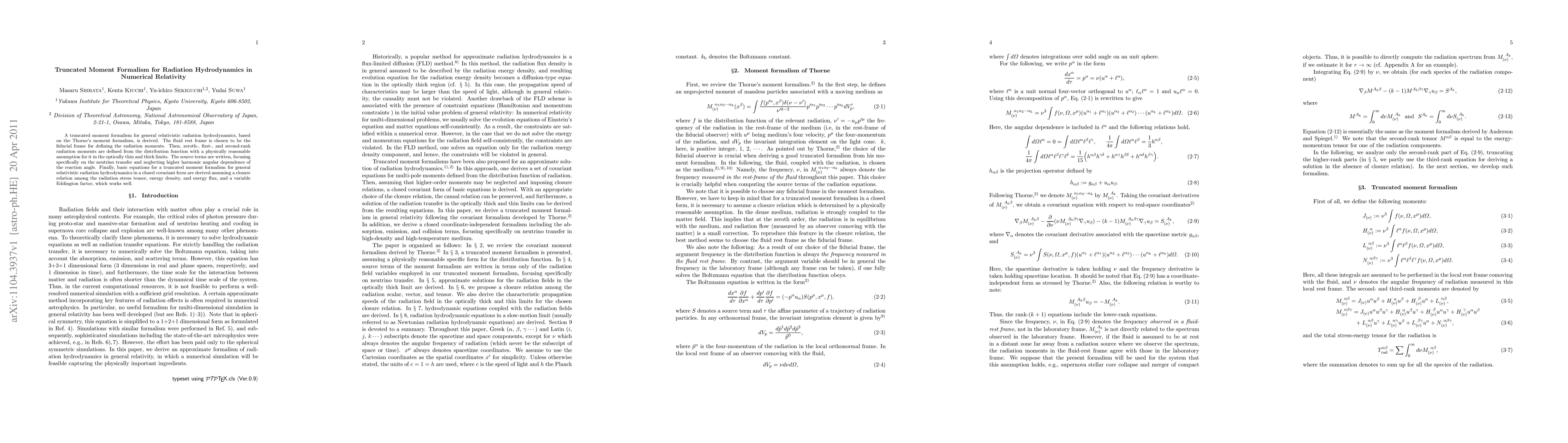 This paper derives a truncated moment formalism for general relativistic radiation hydrodynamics, defining zeroth-, first-, and second-rank radiation moments based on Thorne's formalism. The formalism focuses on neutrino transfer and provides a closed covariant set of equations assuming a closure relation and a variable Eddington factor.