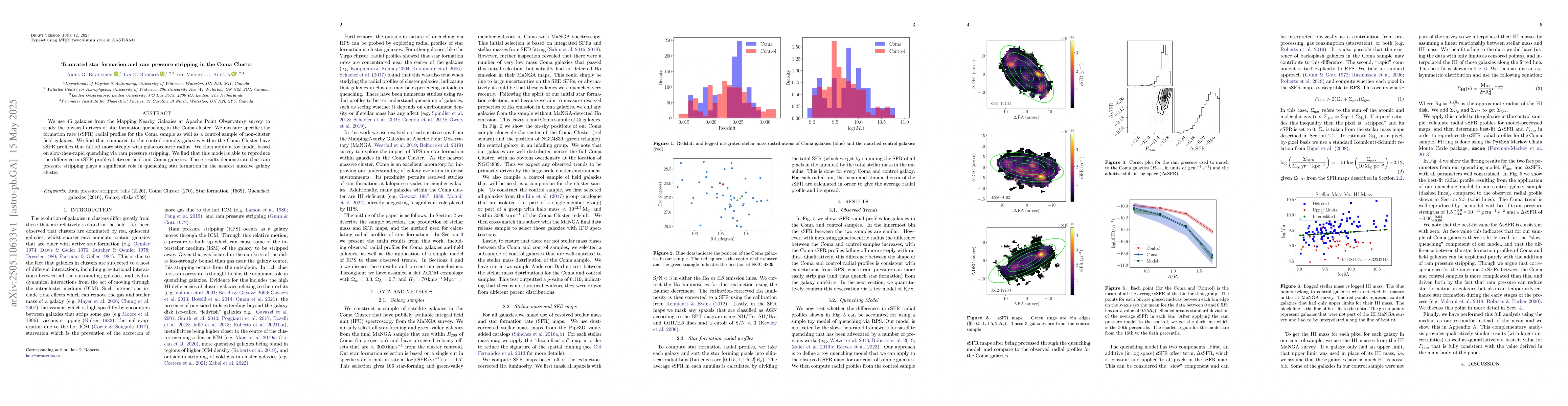 The Coma Cluster's galaxies show steeper star formation rate decline with distance from the center compared to non-cluster galaxies, suggesting ram pressure stripping plays a key role in quenching star formation.