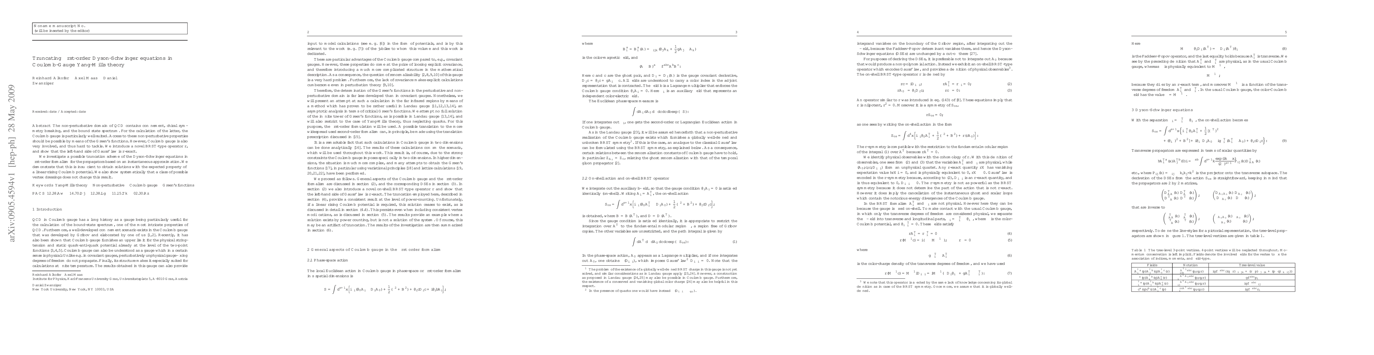 The non-perturbative domain of QCD contains confinement, chiral symmetry breaking, and the bound state spectrum. For the calculation of the latter, the Coulomb gauge is particularly well-suited. Access to these non-perturbative properties should be possible by means of the Green's functions. However, Coulomb gauge is also very involved, and thus hard to tackle. We introduce a novel BRST-type operator r, and show that the left-hand side of Gauss' law is r-exact. We investigate a possible truncation scheme of the Dyson-Schwinger equations in first-order formalism for the propagators based on an instantaneous approximation. We demonstrate that this is insufficient to obtain solutions with the expected property of a linear-rising Coulomb potential. We also show systematically that a class of possible vertex dressings does not change this result.