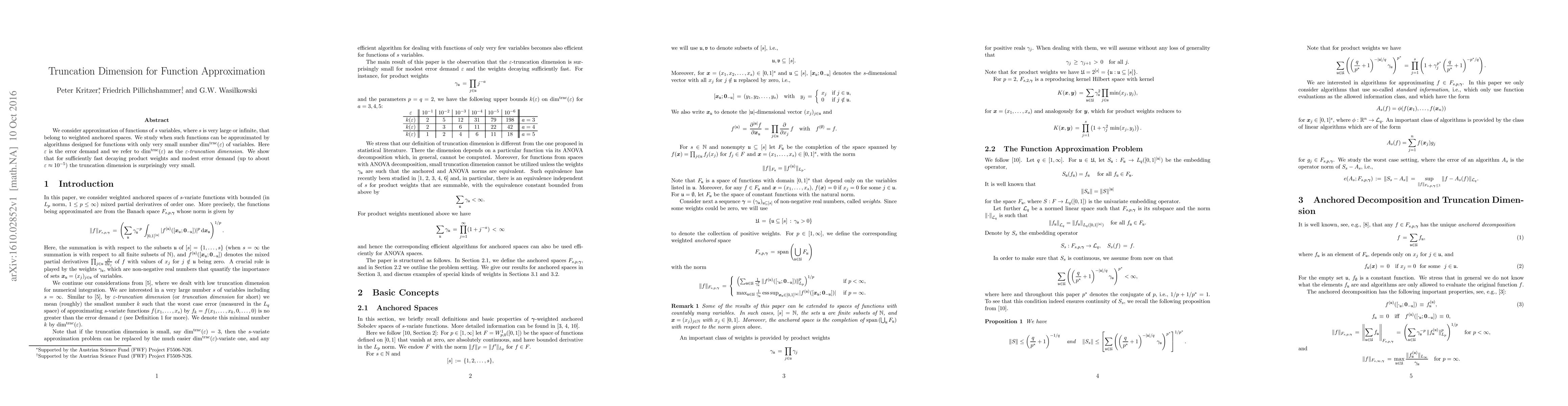 We consider approximation of functions of $s$ variables, where $s$ is very large or infinite, that belong to weighted anchored spaces. We study when such functions can be approximated by algorithms designed for functions with only very small number ${\rm dim^{trnc}}(\varepsilon)$ of variables. Here $\varepsilon$ is the error demand and we refer to ${\rm dim^{trnc}}(\varepsilon)$ as the $\varepsilon$-truncation dimension. We show that for sufficiently fast decaying product weights and modest error demand (up to about $\varepsilon \approx 10^{-5}$) the truncation dimension is surprisingly very small.