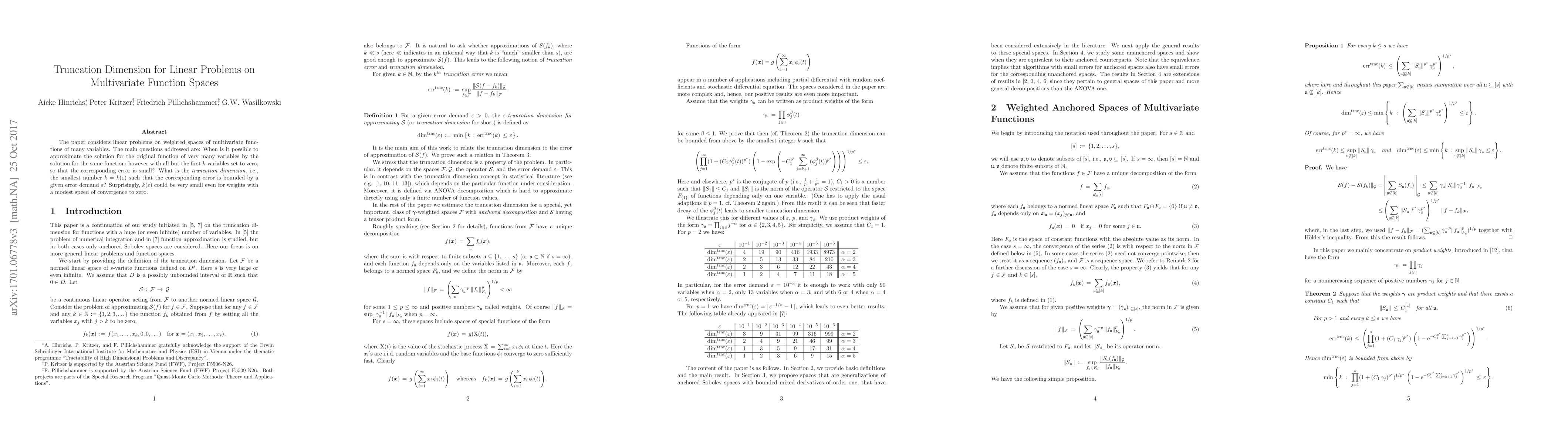 Researchers found that it is possible to approximate a function with many variables by reducing its dimensionality, even with a modest speed of convergence, and identified the concept of truncation dimension to measure this ability.