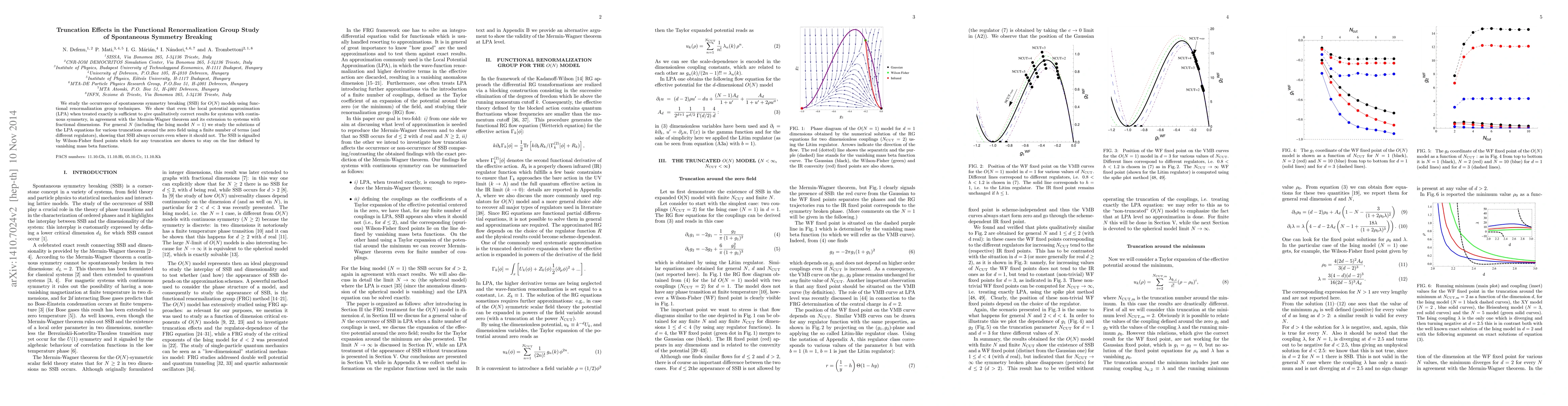 This paper investigates spontaneous symmetry breaking (SSB) in O(N) models via functional renormalization group methods, demonstrating that the local potential approximation (LPA) yields qualitatively correct results for systems with continuous symmetry. It finds that truncations in the LPA equations lead to spurious SSB even when it should not occur, indicated by Wilson-Fisher fixed points.