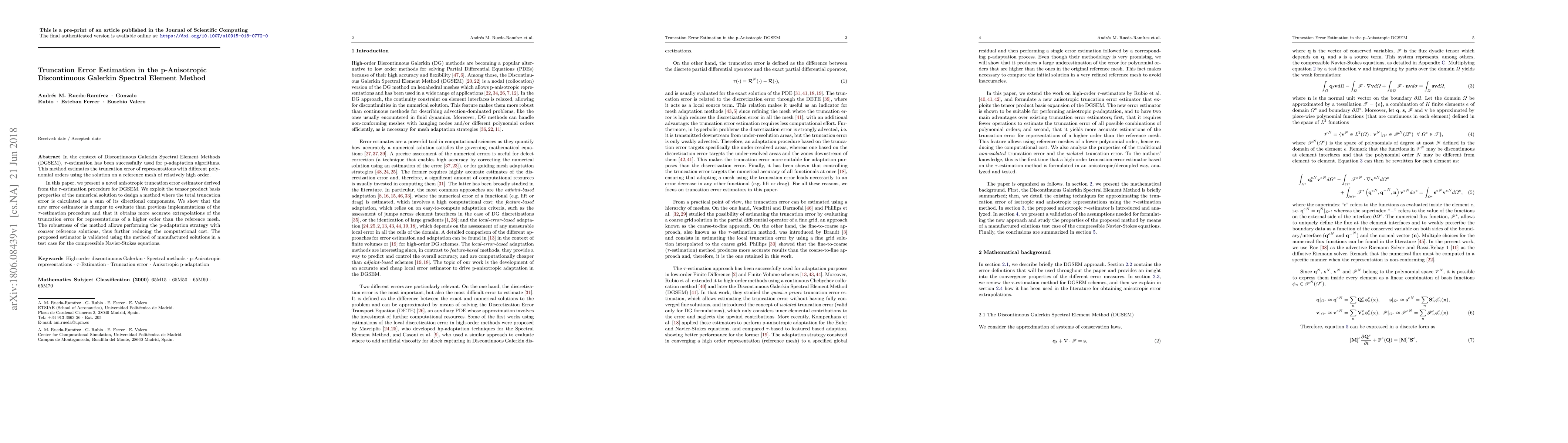 This paper introduces a novel anisotropic truncation error estimator for the p-anisotropic Discontinuous Galerkin Spectral Element Method (DGSEM), which is more efficient and accurate than previous methods. The new estimator decomposes the total truncation error into directional components, reducing computational costs and enabling p-adaptation with coarser reference solutions.