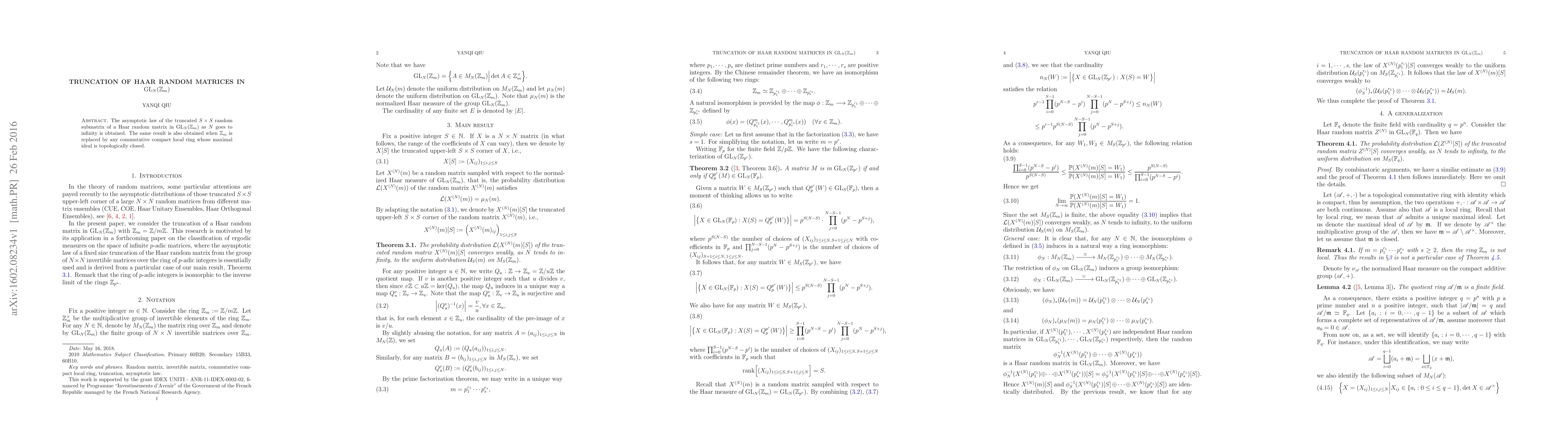 The asymptotic law of the truncated $S\times S$ random submatrix of a Haar random matrix in $\mathrm{GL}_N(\mathbb{Z}_m)$ as $N$ goes to infinity is obtained. The same result is also obtained when $\mathbb{Z}_m$ is replaced by any commutative compact local ring whose maximal ideal is topologically closed.