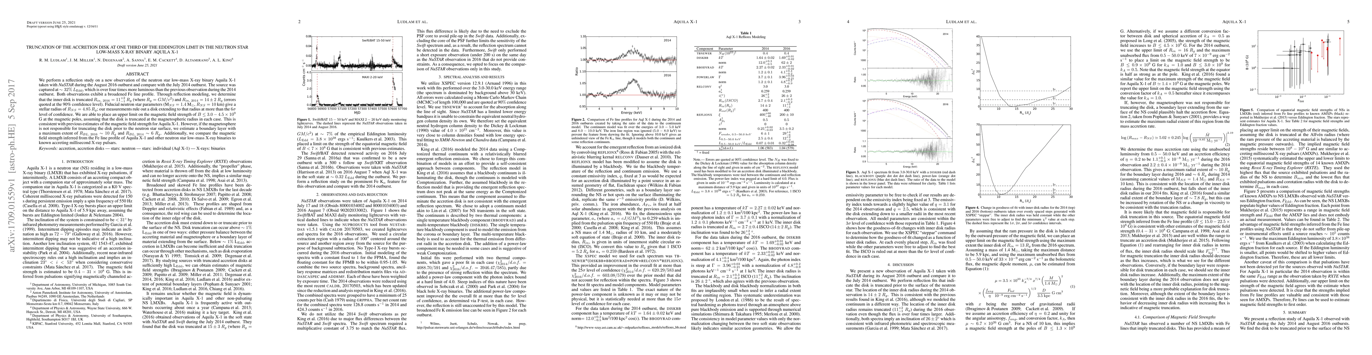 This study analyzes the neutron star low-mass X-ray binary Aquila X-1 at $\sim32\%$ of the Eddington limit, revealing a truncated accretion disk with inner radii of $11_{-1}^{+2}\ R_{g}$ in 2016 and $14\pm2\ R_{g}$ in 2014, ruling out a disk extending to the neutron star's radius. The magnetic field strength is constrained to $B\leq3.0-4.5\times10^{9}$ G at the poles.