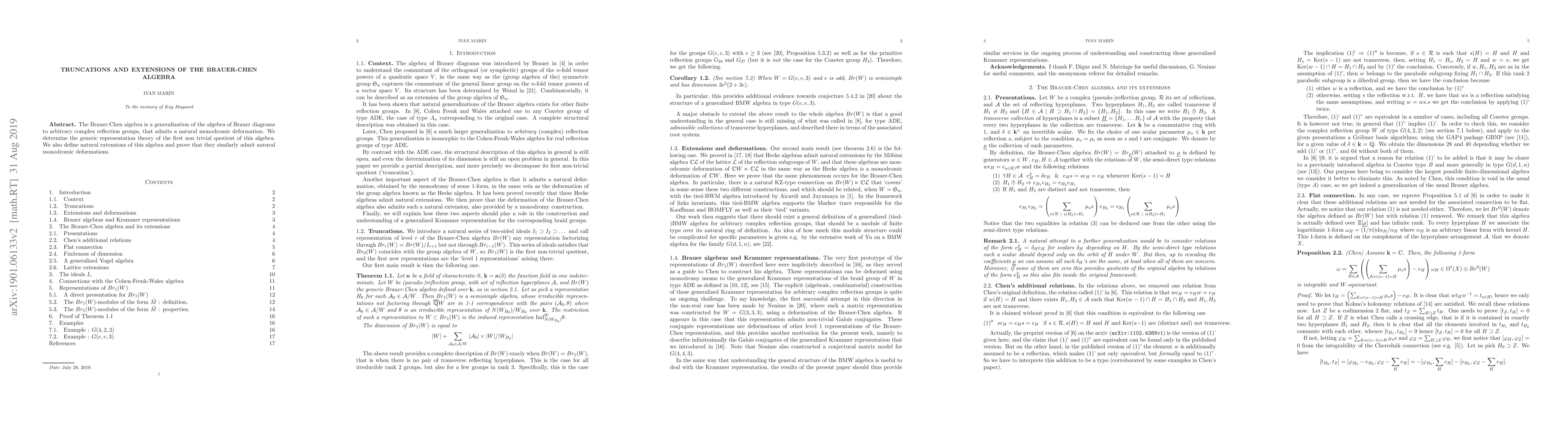 The paper explores the Brauer-Chen algebra, a generalization of Brauer diagrams for complex reflection groups, and determines its generic representation theory for a key quotient. It also introduces extensions of this algebra and proves they maintain natural monodromic deformations.