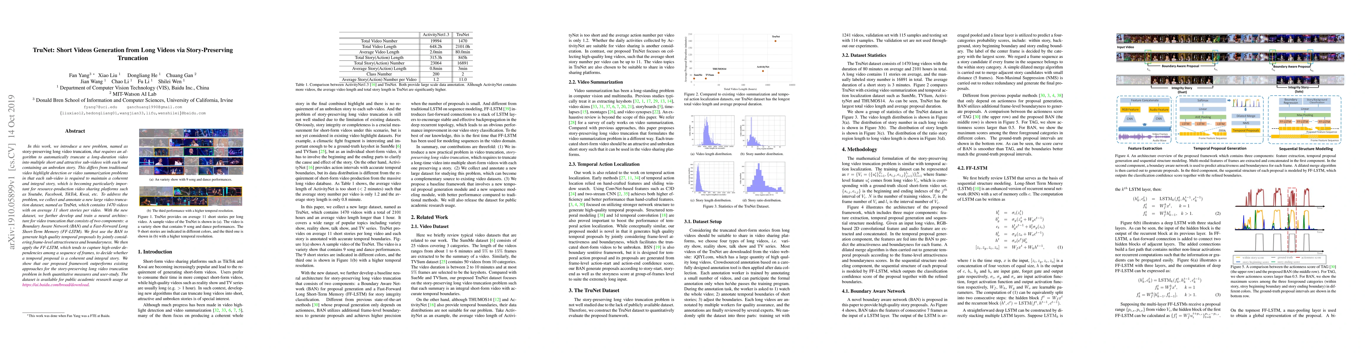 This paper introduces a novel problem of story-preserving long video truncation, aiming to automatically generate multiple short, coherent sub-videos from long videos. The authors develop a neural architecture with a Boundary Aware Network and Fast-Forward LSTM to achieve this, outperforming existing methods, and release a new dataset, TruNet, for further research.