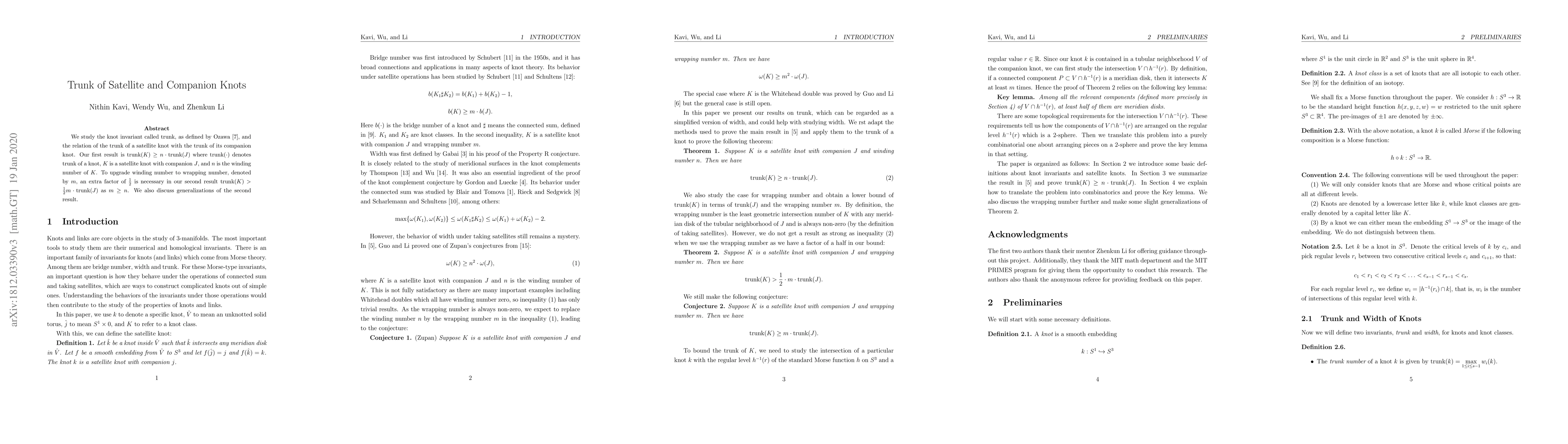 The paper introduces and proves new inequalities relating the trunk of satellite knots to their companion knots using the wrapping number as a measure.