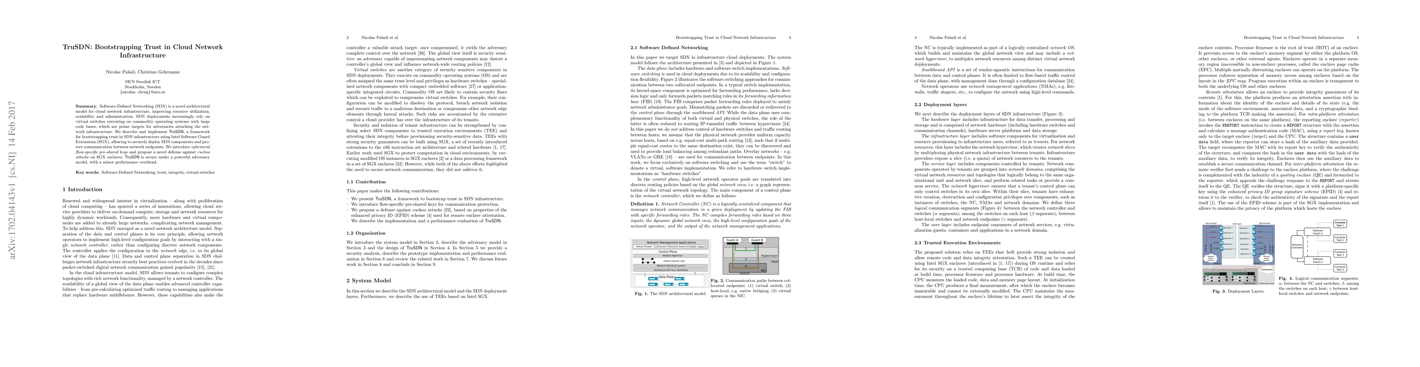 Researchers developed TruSDN, a framework that uses Intel SGX to securely deploy SDN components and protect network communication, providing trust in cloud network infrastructure.