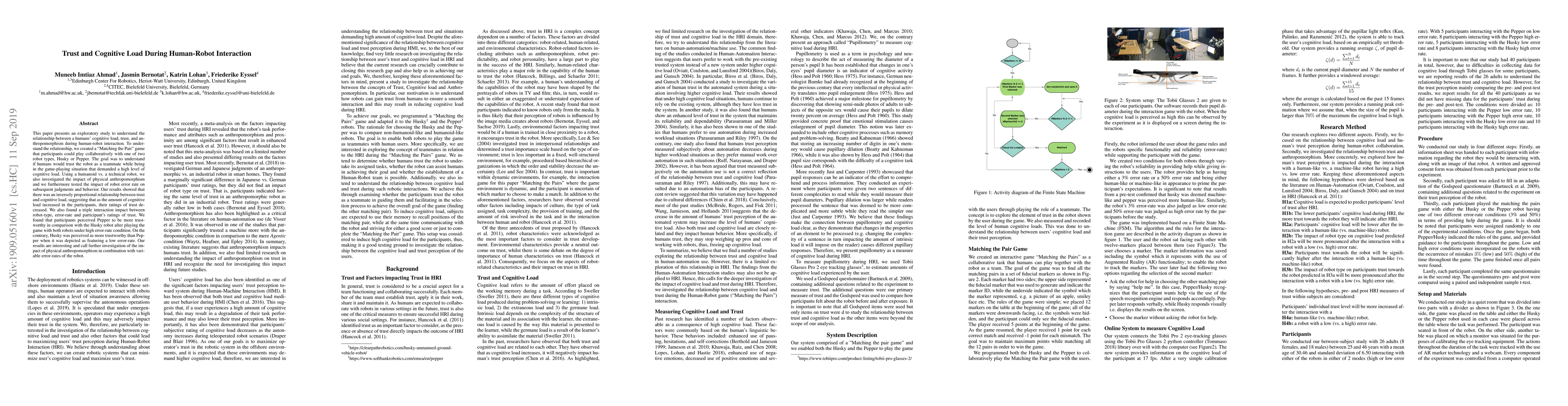 This study explores the relationship between cognitive load, trust, and anthropomorphism in human-robot interaction using a "Matching the Pair" game with two robot types, Husky and Pepper. Results indicate an inverse relationship between cognitive load and trust, and a triple interaction effect involving robot type, error rate, and trust, suggesting that anthropomorphism and error rates significantly influence trust perceptions.