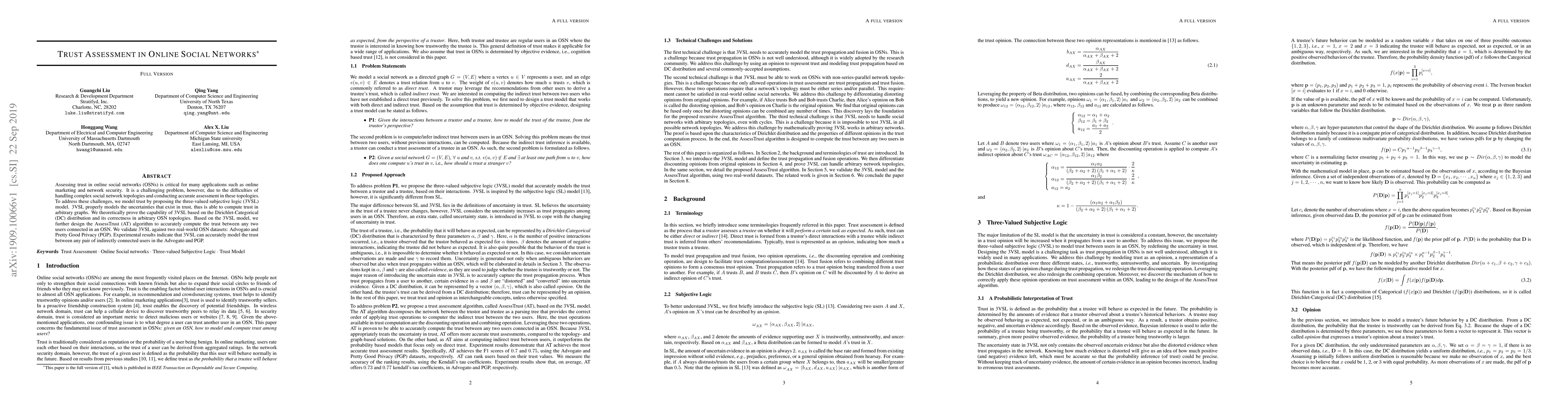 This paper proposes a three-valued subjective logic (3VSL) model to assess trust in online social networks, addressing complexities in social network topologies. The 3VSL model, validated against real-world datasets, and the AssessTrust algorithm it supports, demonstrate accurate computation of trust in arbitrary OSN graphs.
