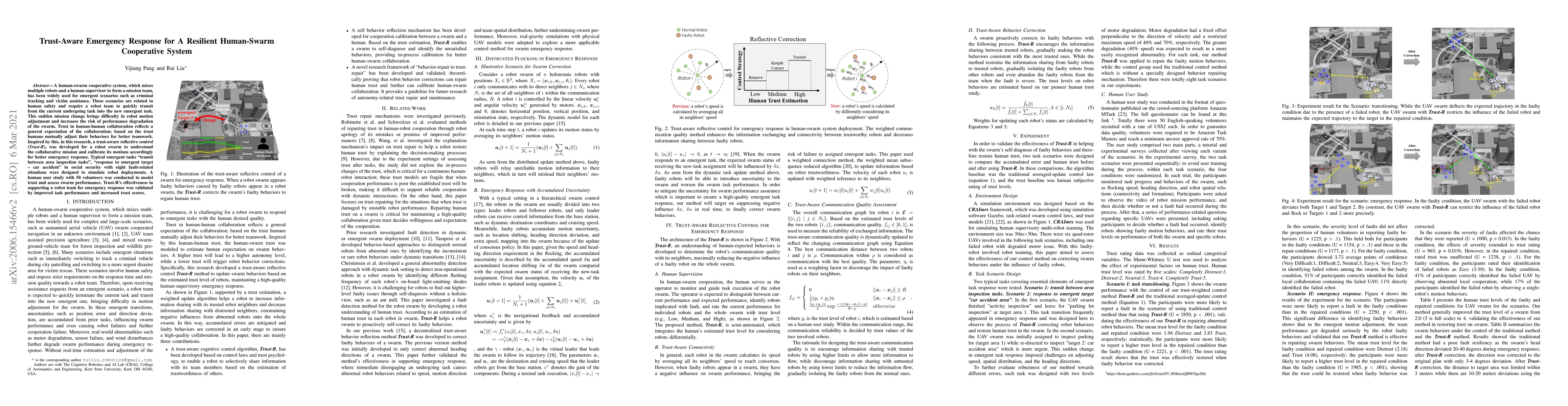 This paper proposes a trust-aware reflective control (Trust-R) to dynamically calibrate human-swarm cooperation in emergency response scenarios. Trust-R uses a weighted mean subsequence reduced algorithm and human trust modeling to proactively correct faulty robot behaviors, improving swarm performance and increasing human trust.