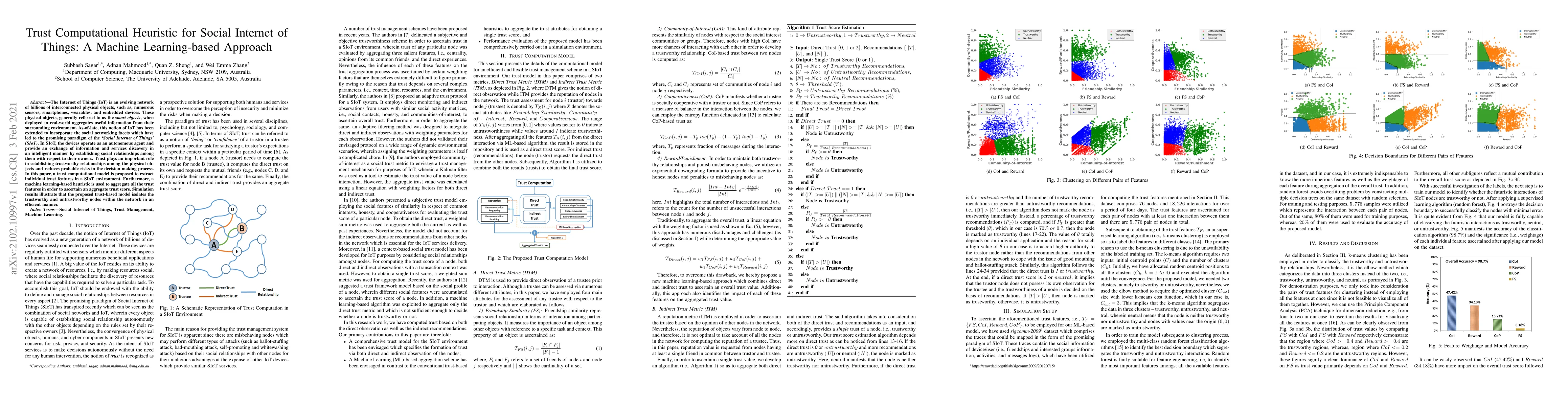 This paper proposes a trust computational model for the Social Internet of Things (SIoT) to extract individual trust features and uses a machine learning heuristic to aggregate these features into an aggregate trust score, demonstrating effective isolation of trustworthy and untrustworthy nodes.