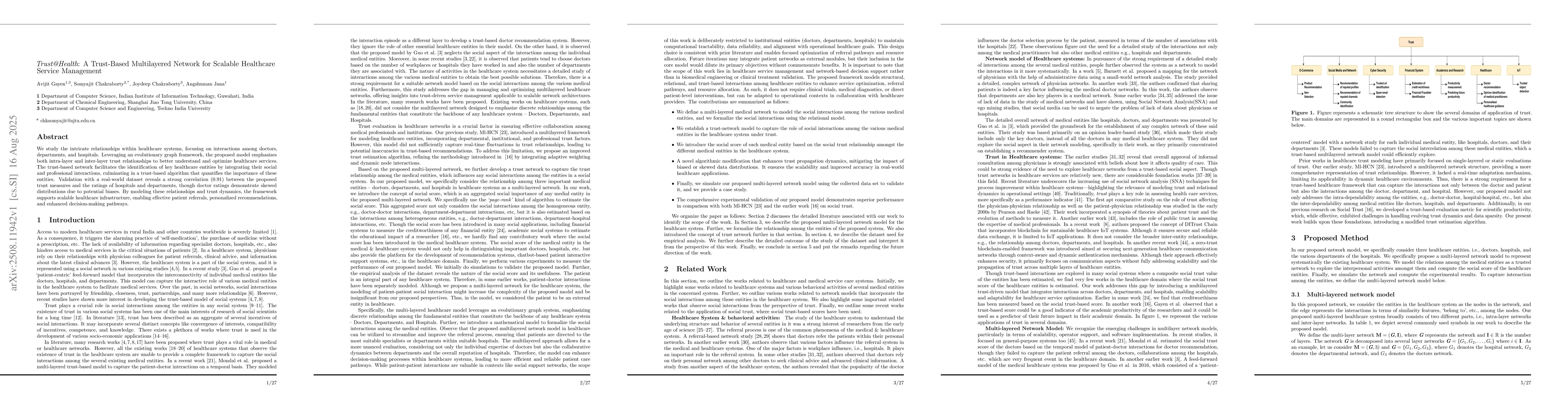 We study the intricate relationships within healthcare systems, focusing on interactions among doctors, departments, and hospitals. Leveraging an evolutionary graph framework, the proposed model emphasizes both intra-layer and inter-layer trust relationships to better understand and optimize healthcare services. The trust-based network facilitates the identification of key healthcare entities by integrating their social and professional interactions, culminating in a trust-based algorithm that quantifies the importance of these entities. Validation with a real-world dataset reveals a strong correlation (0.91) between the proposed trust measures and the ratings of hospitals and departments, though doctor ratings demonstrate skewed distributions due to potential biases. By modeling these relationships and trust dynamics, the framework supports scalable healthcare infrastructure, enabling effective patient referrals, personalized recommendations, and enhanced decision-making pathways.