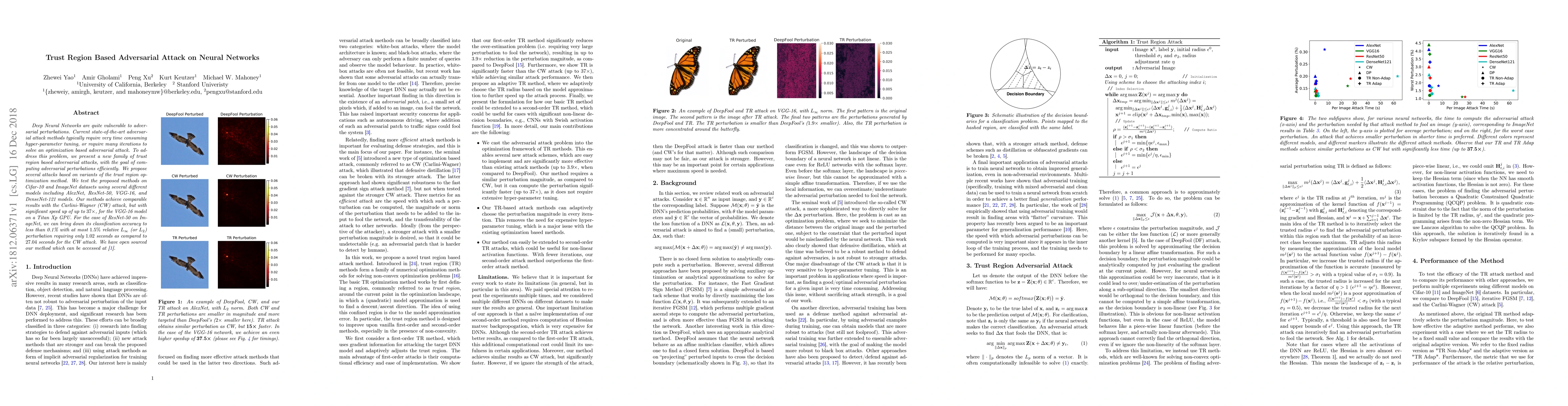 This paper introduces trust region based adversarial attacks to efficiently generate adversarial perturbations for neural networks, achieving comparable effectiveness to the Carlini-Wagner attack while significantly reducing computation time, up to 37x faster for some models. The proposed methods are tested on various datasets and models, demonstrating notable speed improvements.
