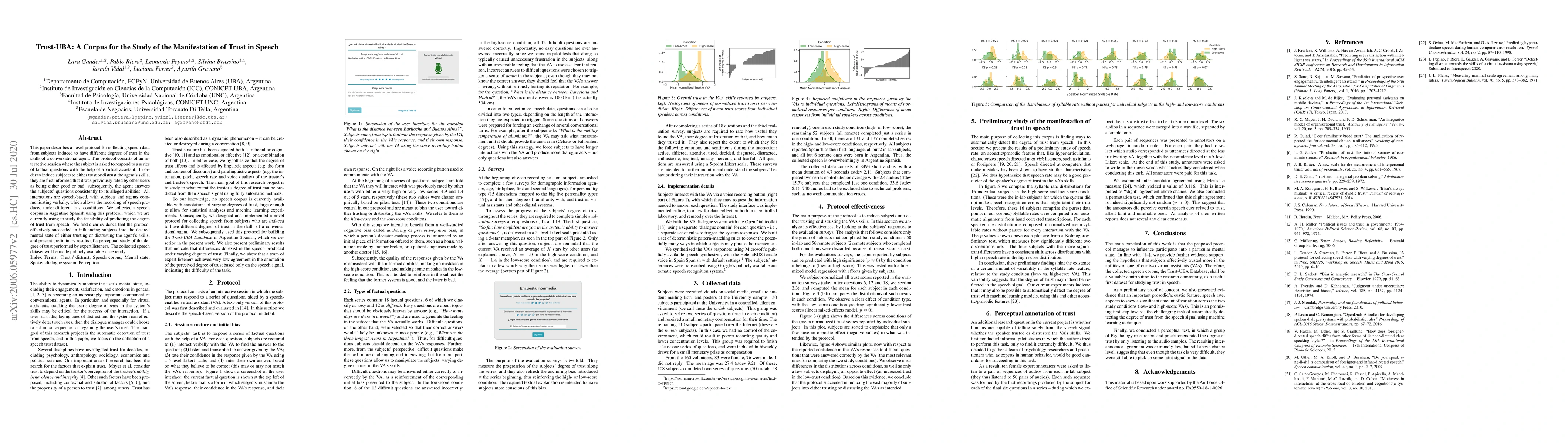 This paper introduces a protocol for collecting speech data from subjects with varying degrees of trust in a virtual assistant, revealing distinct speech patterns under different trust conditions. The study's Argentine Spanish corpus will be publicly available to explore trust prediction from speech.