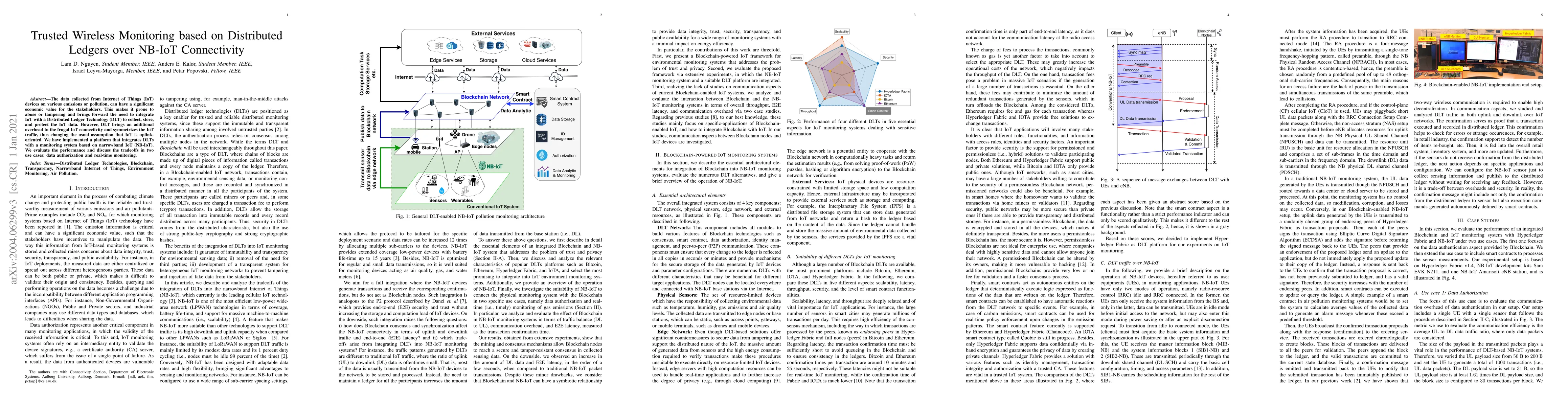 A blockchain-based monitoring system integrates with NB-IoT connectivity to protect IoT data from abuse and tamper, enabling real-time monitoring and secure data authorization.