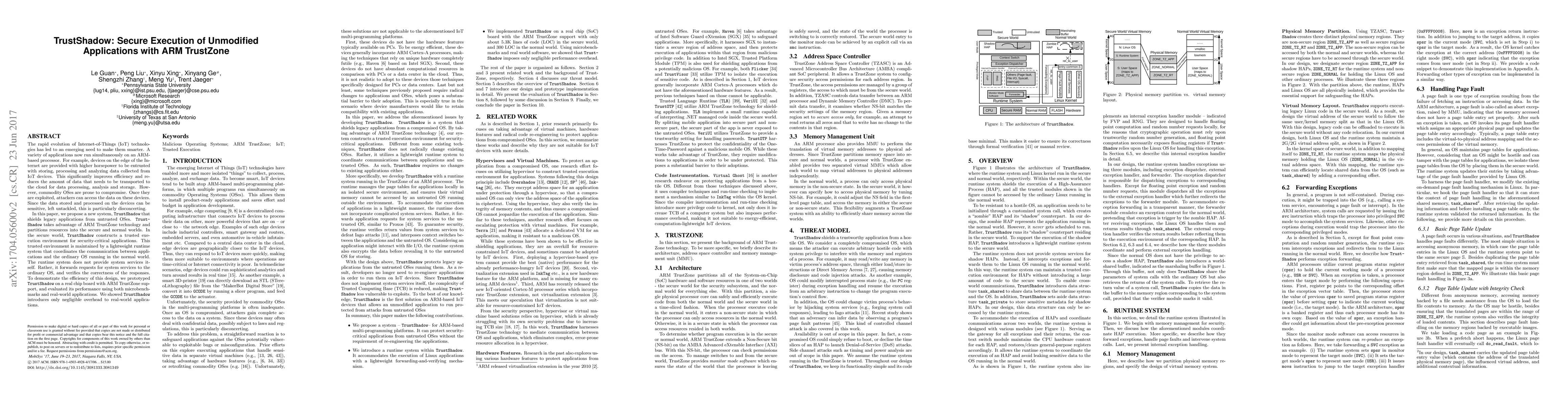 TrustShadow leverages ARM TrustZone to create a secure execution environment for unmodified legacy applications, protecting them from untrusted operating systems. The system partitions resources and uses a lightweight runtime to manage communication, ensuring minimal performance overhead.