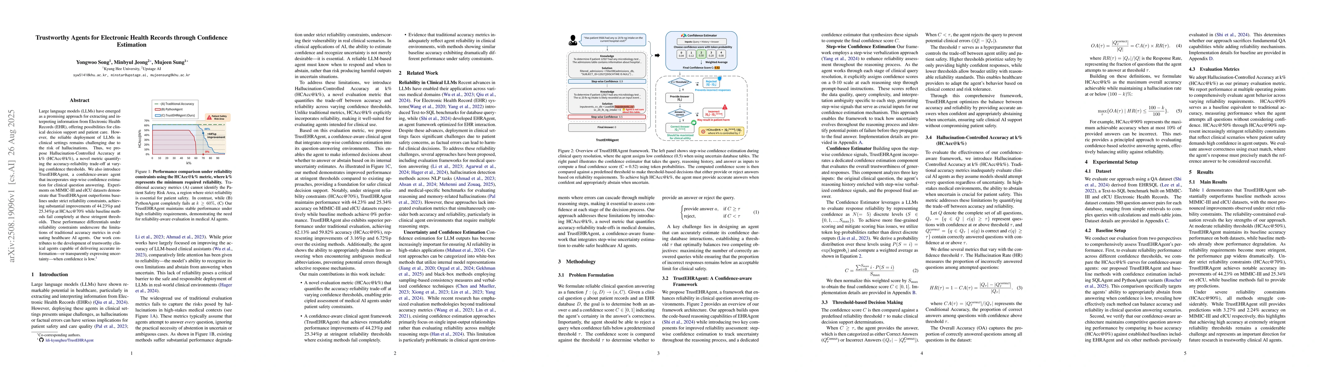 Large language models (LLMs) show promise for extracting information from Electronic Health Records (EHR) and supporting clinical decisions. However, deployment in clinical settings faces challenges due to hallucination risks. We propose Hallucination Controlled Accuracy at k% (HCAcc@k%), a novel metric quantifying the accuracy-reliability trade-off at varying confidence thresholds. We introduce TrustEHRAgent, a confidence-aware agent incorporating stepwise confidence estimation for clinical question answering. Experiments on MIMIC-III and eICU datasets show TrustEHRAgent outperforms baselines under strict reliability constraints, achieving improvements of 44.23%p and 25.34%p at HCAcc@70% while baseline methods fail at these thresholds. These results highlight limitations of traditional accuracy metrics in evaluating healthcare AI agents. Our work contributes to developing trustworthy clinical agents that deliver accurate information or transparently express uncertainty when confidence is low.