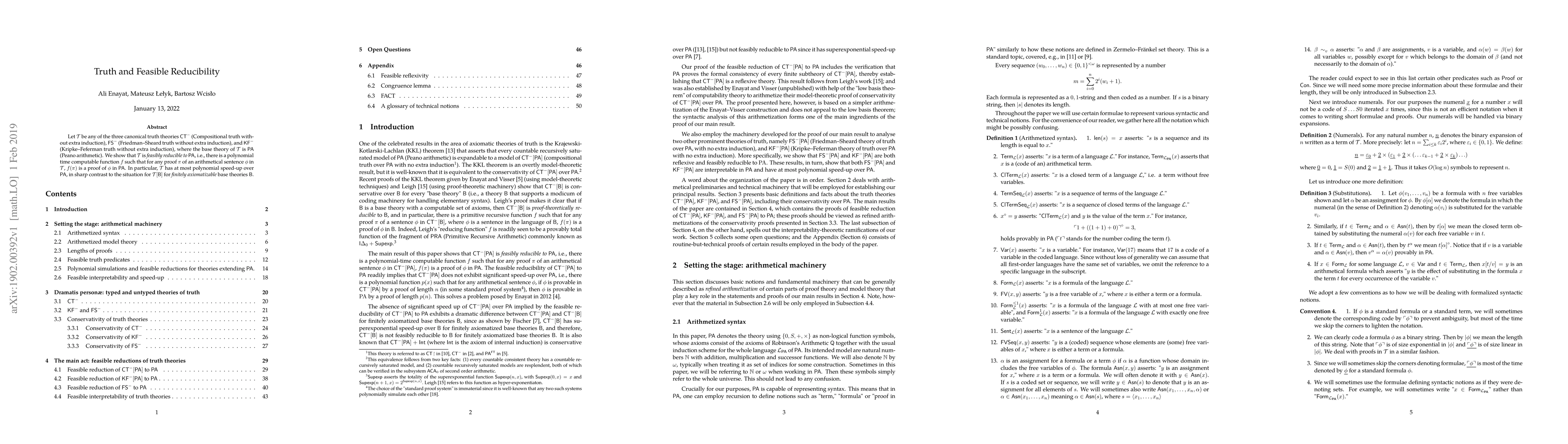 This paper demonstrates that three canonical truth theories ($\textsf{CT}^-$, $\textsf{FS}^-$, and $\textsf{KF}^-$) based on Peano arithmetic are feasibly reducible to $\textsf{PA}$, meaning they can be polynomially transformed into proofs within $\textsf{PA}$. This contrasts with theories based on finitely axiomatizable bases, which exhibit greater speed-up.