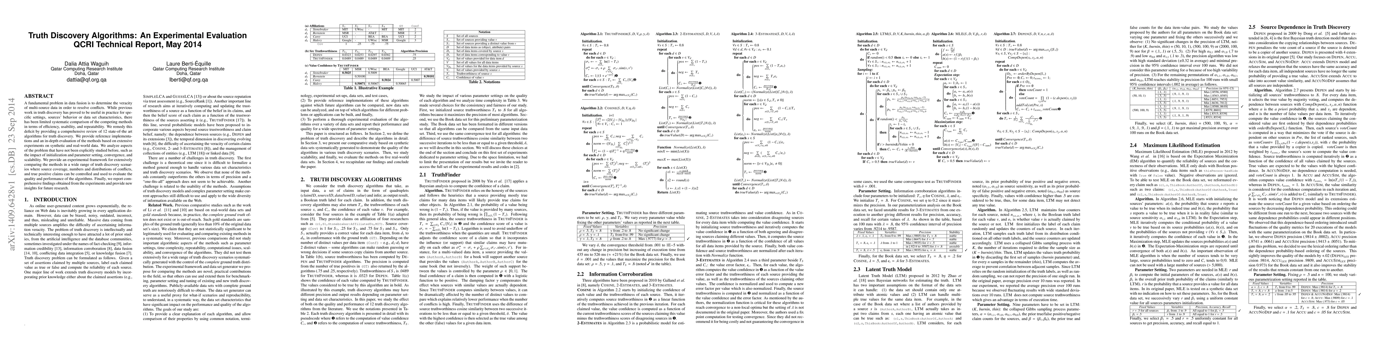 This paper evaluates 12 truth discovery algorithms for resolving conflicts in multi-source data, providing insights into their efficiency, usability, and performance in various scenarios. The study offers a comprehensive framework for comparing methods and identifying areas for improvement in future research.