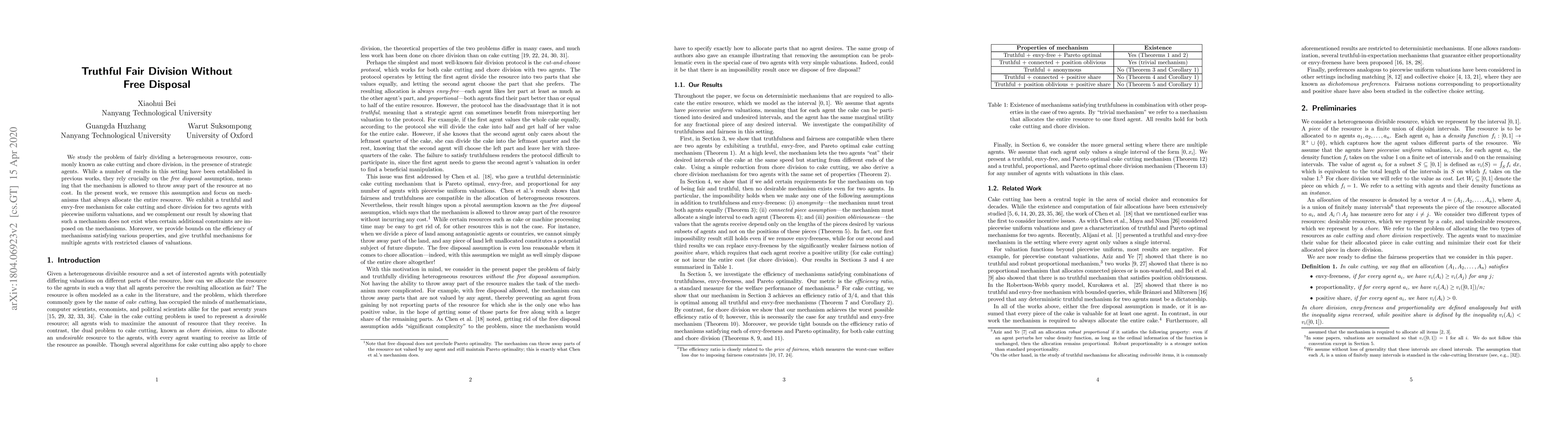 This paper presents a truthful and envy-free mechanism for fairly dividing a heterogeneous resource among two agents without the free disposal assumption, and proves the non-existence of such mechanisms under additional constraints. It also provides efficiency bounds and truthful mechanisms for multiple agents with specific valuation classes.