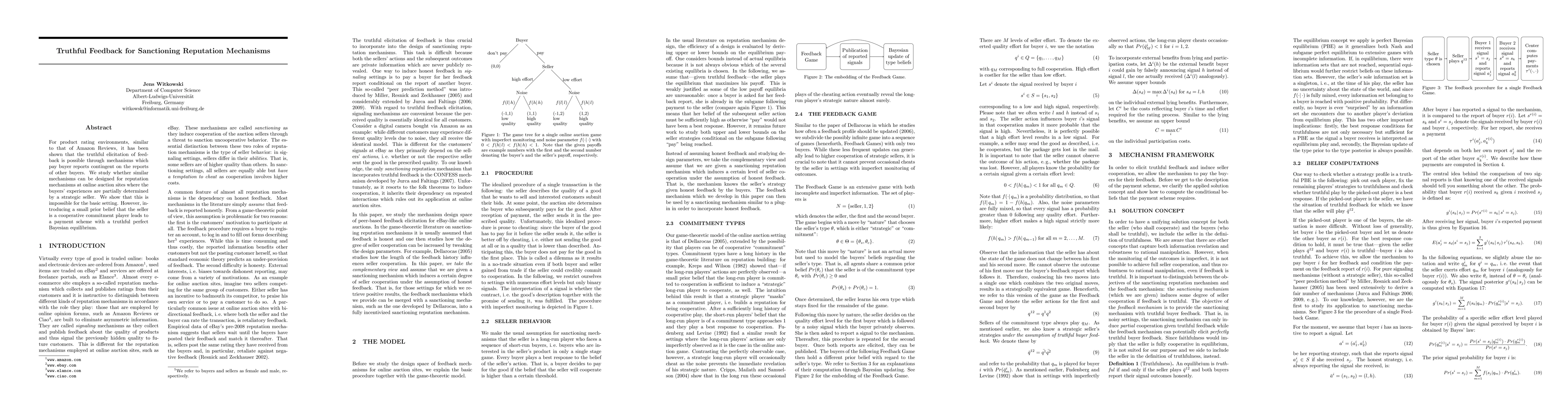 This paper explores the design of truthful feedback mechanisms for reputation systems in online auction environments, demonstrating that while basic mechanisms fail, incorporating a small prior belief in the seller's cooperative behavior can enable a payment scheme that achieves truthful perfect Bayesian equilibrium.