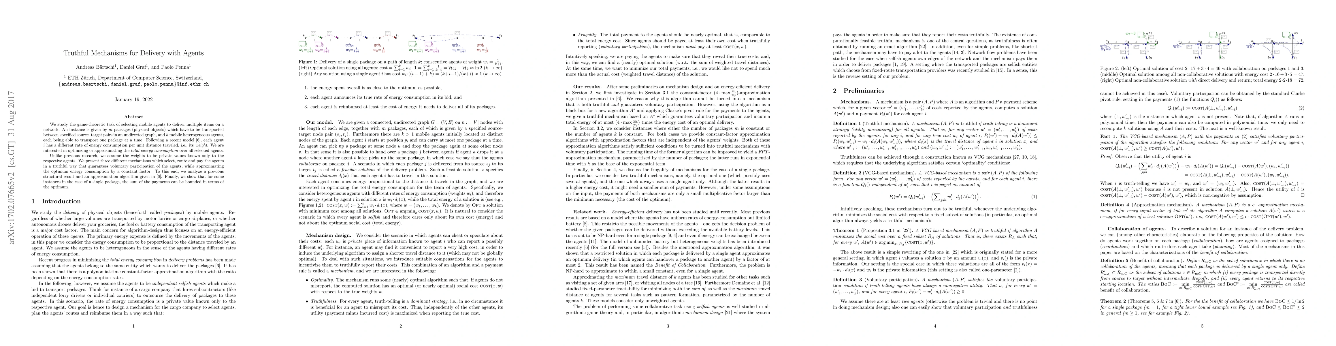 We study the game-theoretic task of selecting mobile agents to deliver multiple items on a network. An instance is given by $m$ messages (physical objects) which have to be transported between specified source-target pairs in a weighted undirected graph, and $k$ mobile heterogeneous agents, each being able to transport one message at a time. Following a recent model by [B\"artschi et al. 2016], each agent $i$ consumes energy proportional to the distance it travels in the graph, where the different rates of energy consumption are given by weight factors $w_i$. We are interested in optimizing or approximating the total energy consumption over all selected agents. Unlike previous research, we assume the weights to be private values known only to the respective agents. We present three different mechanisms which select, route and pay the agents in a truthful way that guarantees voluntary participation of the agents, while approximating the optimum energy consumption by a constant factor. To this end we analyze a previous structural result and an approximation algorithm given by [B\"artschi et al. 2017]. Finally, we show that for some instances in the case of a single package, the sum of the payments can be bounded in terms of the optimum.