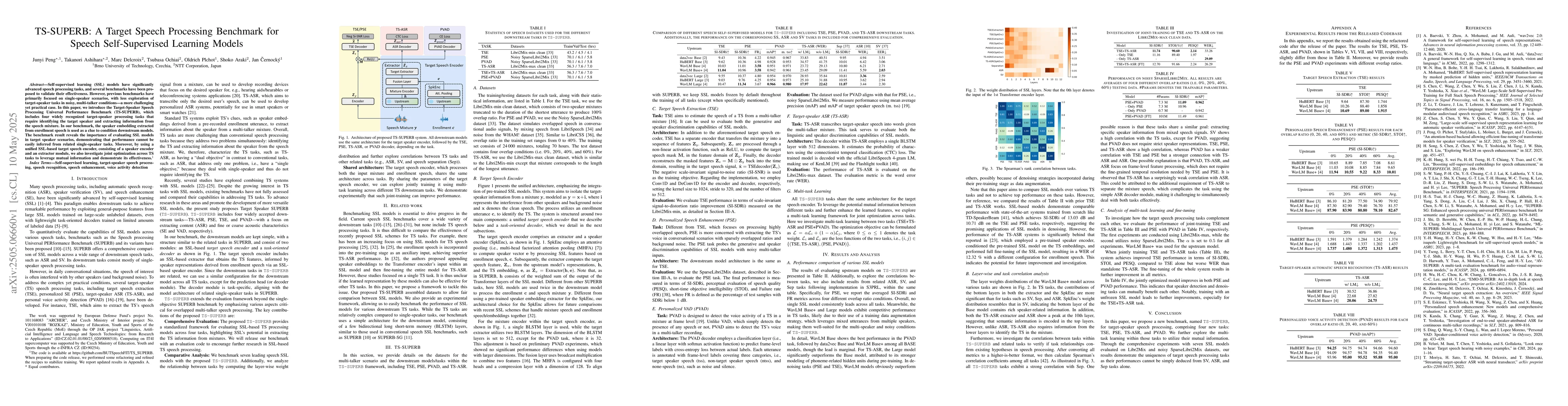 The paper introduces TS-SUPERB, a benchmark for target-speaker speech processing tasks using self-supervised learning models. It includes four tasks, evaluating speaker embeddings from enrollment speech to condition downstream models.