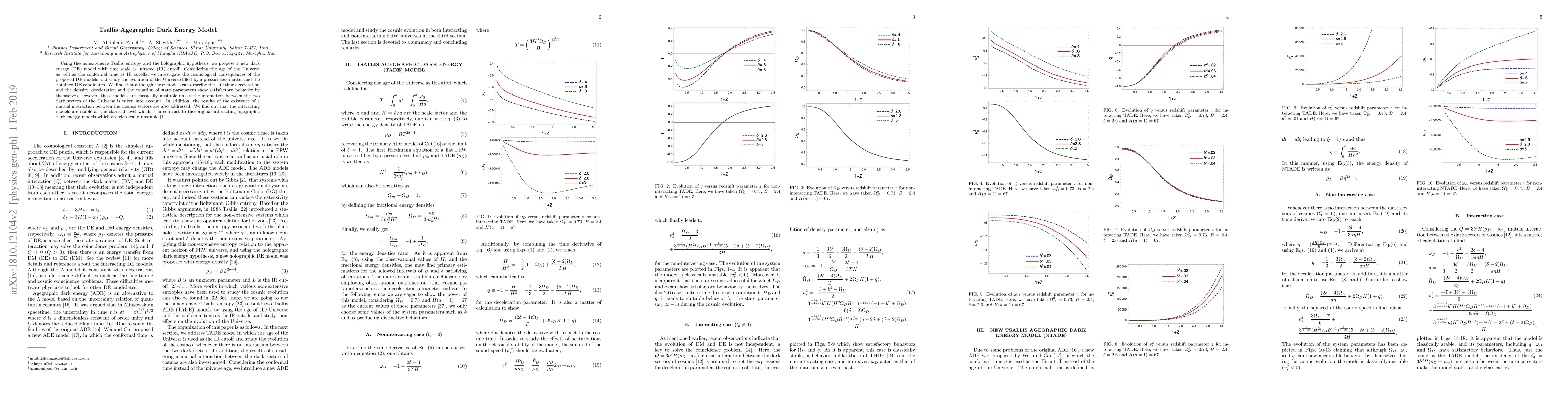 Using the nonextensive Tsallis entropy and the holographic hypothesis, we propose a new dark energy (DE) model with time scale as infrared (IR) cutoff. Considering the age of the Universe as well as the conformal time as IR cutoffs, we investigate the cosmological consequences of the proposed DE models and study the evolution of the Universe filled by a pressureless matter and the obtained DE candidates. We find that although these models can describe the late time acceleration and the density, deceleration and the equation of state parameters show satisfactory behavior by themselves, however, these models are classically unstable unless the interaction between the two dark sectors of the Universe is taken into account. In addition, the results of the existence of a mutual interaction between the cosmos sectors are also addressed. We find out that the interacting models are stable at the classical level which is in contrast to the original interacting agegraphic dark energy models which are classically unstable [1].