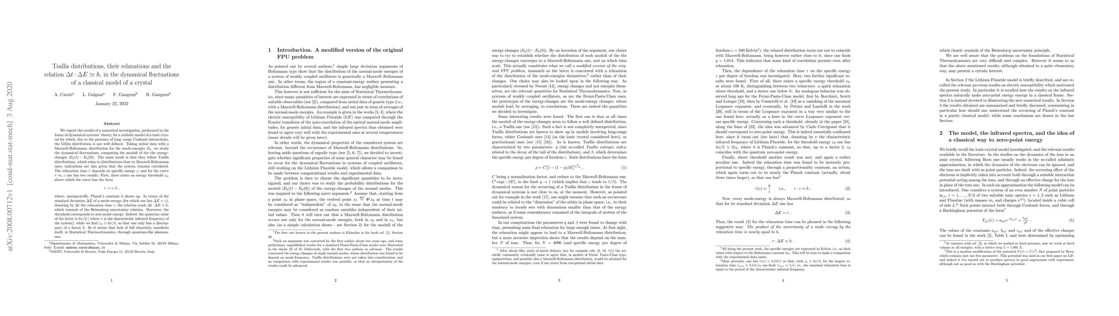 We report the results of a numerical investigation, performed in the frame of dynamical systems' theory, for a realistic model of a ionic crystal for which, due to the presence of long--range Coulomb interactions, the Gibbs distribution is not well defined. Taking initial data with a Maxwell-Boltzmann distribution for the mode-energies $E_k$, we study the dynamical fluctuations, computing the moduli of the the energy-changes $|E_k(t)-E_k(0)|$. The main result is that they follow Tsallis distributions, which relax to distributions close to Maxwell-Boltzmann ones; indications are also given that the system remains correlated. The relaxation time $\tau$ depends on specific energy $\varepsilon$, and for the curve $\tau$ vs, $\varepsilon$ one has two results. First, there exists an energy threshold $\varepsilon_0$, above which the curve has the form $$ \tau \cdot \varepsilon \simeq h\ , $$ where, unexpectedly, Planck's constant $h$ shows up. In terms of the standard deviation $\Delta E$ of a mode-energy (for which one has $\Delta E=\varepsilon$), denoting by $\Delta t$ the relaxation time $\tau$, the relation reads $\Delta t \cdot \Delta E \simeq h$, which reminds of the Heisenberg uncertainty relation. Moreover, the threshold corresponds to zero-point energy. Indeed, the quantum value of the latter is $h\nu/2$ ( where $\nu$ is the characterisic infrared frequency of the system), while we find $\varepsilon \simeq h\nu/4$, so that one only has a discrepancy of a factor 2. So it seems that lack of full chaoticity manifests itself, in Statistical Thermodynamics, through quantum-like phenomena.