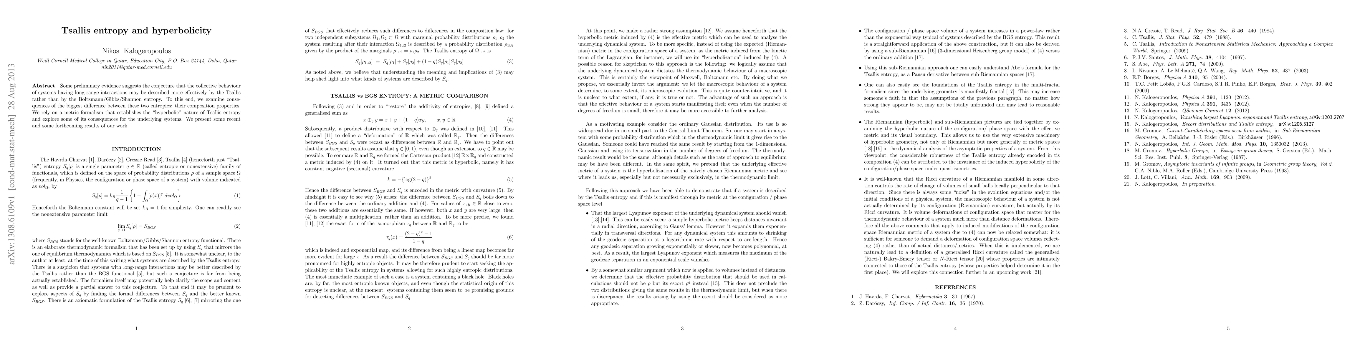 This paper explores the conjecture that Tsallis entropy, rather than Boltzmann/Gibbs/Shannon entropy, better describes systems with long-range interactions. It focuses on the hyperbolic nature of Tsallis entropy and its compositional properties, presenting recent findings and future research directions.