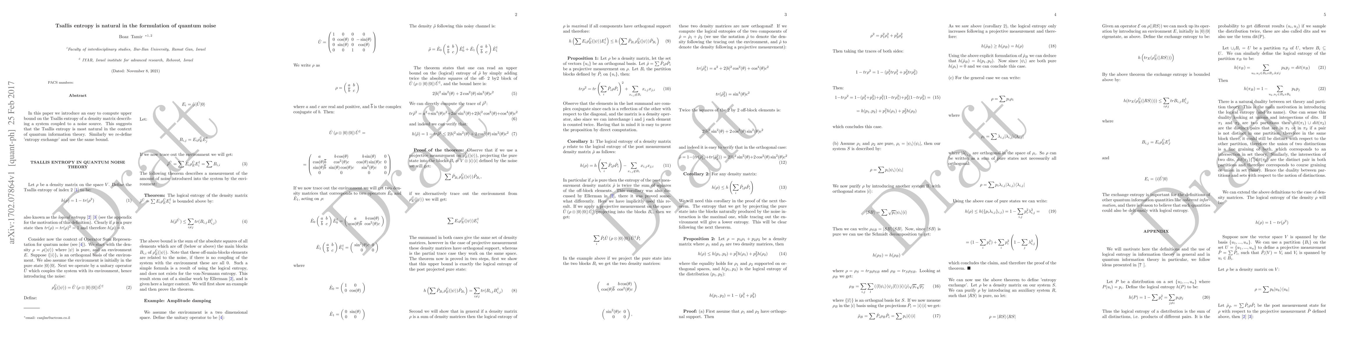 In this paper we introduce an easy to compute upper bound on the Tsallis entropy of a density matrix describing a system coupled to a noise source. This suggests that the Tsallis entropy is most natural in the context of quantum information theory. Similarly we redefine entropy exchange and use the same bound.