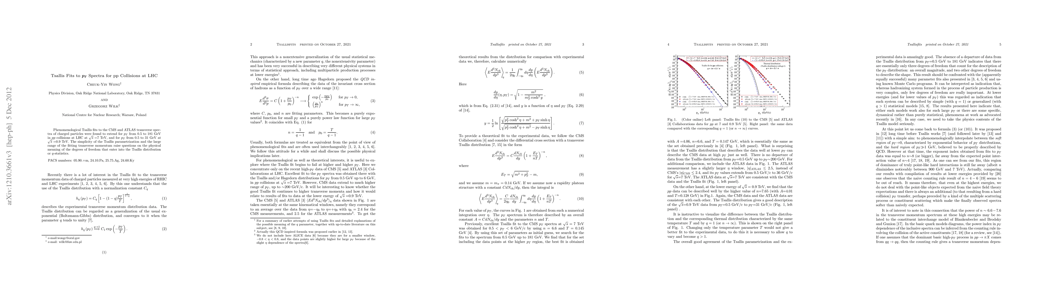 Phenomenological Tsallis fits to the CMS and ATLAS transverse spectra of charged particles were found to extend for p_T from 0.5 to 181 GeV in pp collisions at LHC at \sqrt{s}=7 TeV, and for p_T from 0.5 to 31 GeV at \sqrt{s}=0.9 TeV. The simplicity of the Tsallis parametrization and the large range of the fitting transverse momentum raise questions on the physical meaning of the degrees of freedom that enter into the Tsallis distribution or q-statistics.