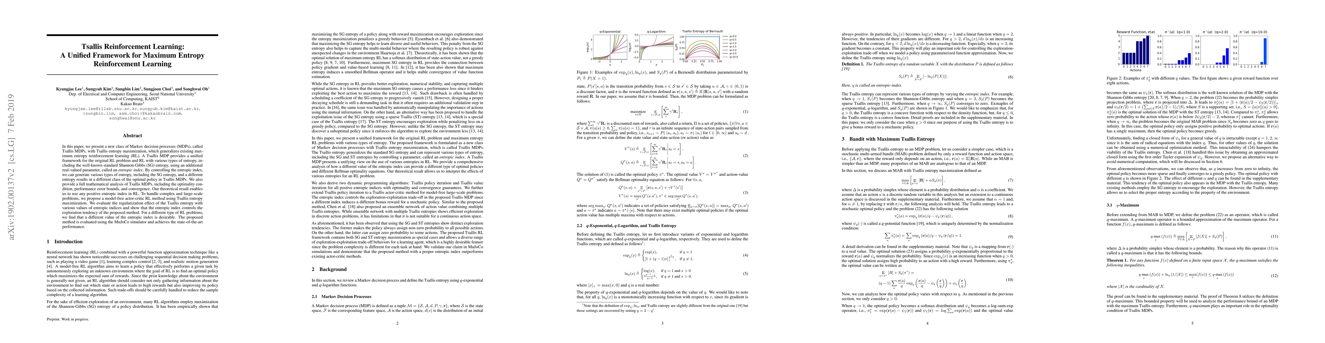 This paper introduces Tsallis MDPs, a framework that generalizes maximum entropy reinforcement learning through Tsallis entropy maximization, controlled by an entropic index. It provides a unified approach for various entropy types, including Shannon-Gibbs entropy, and demonstrates its effectiveness in model-free actor-critic reinforcement learning, achieving state-of-the-art performance on complex tasks.