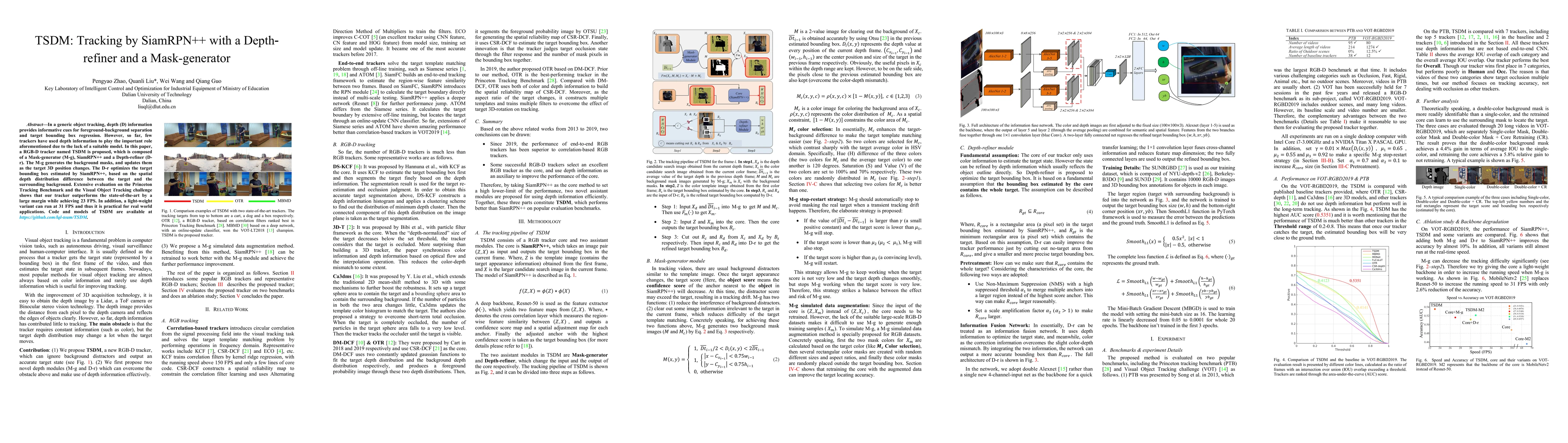 In a generic object tracking, depth (D) information provides informative cues for foreground-background separation and target bounding box regression. However, so far, few trackers have used depth information to play the important role aforementioned due to the lack of a suitable model. In this paper, a RGB-D tracker named TSDM is proposed, which is composed of a Mask-generator (M-g), SiamRPN++ and a Depth-refiner (D-r). The M-g generates the background masks, and updates them as the target 3D position changes. The D-r optimizes the target bounding box estimated by SiamRPN++, based on the spatial depth distribution difference between the target and the surrounding background. Extensive evaluation on the Princeton Tracking Benchmark and the Visual Object Tracking challenge shows that our tracker outperforms the state-of-the-art by a large margin while achieving 23 FPS. In addition, a light-weight variant can run at 31 FPS and thus it is practical for real world applications. Code and models of TSDM are available at https://github.com/lql-team/TSDM.